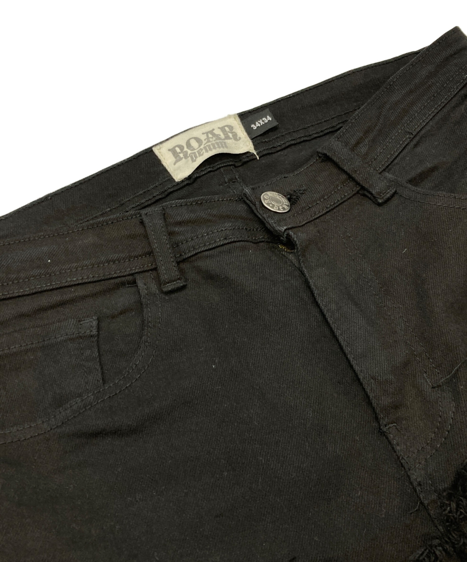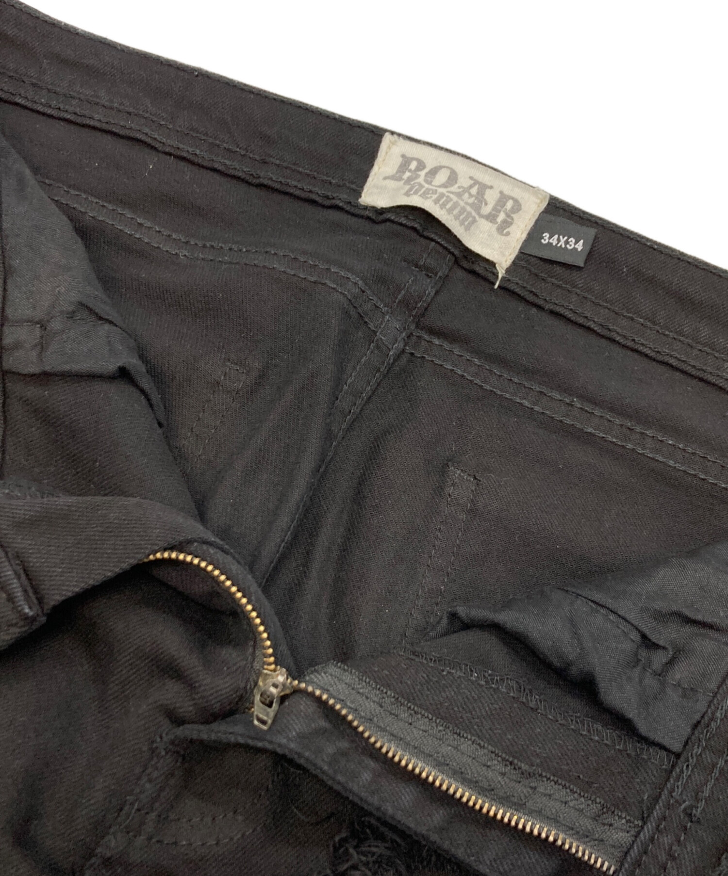 • ROAR Denim(ロアーデニム)ROAR Denim (ロアーデニム) デニムパンツ ブラック サイズ:34/34の古着・服飾アイテム ホツレ