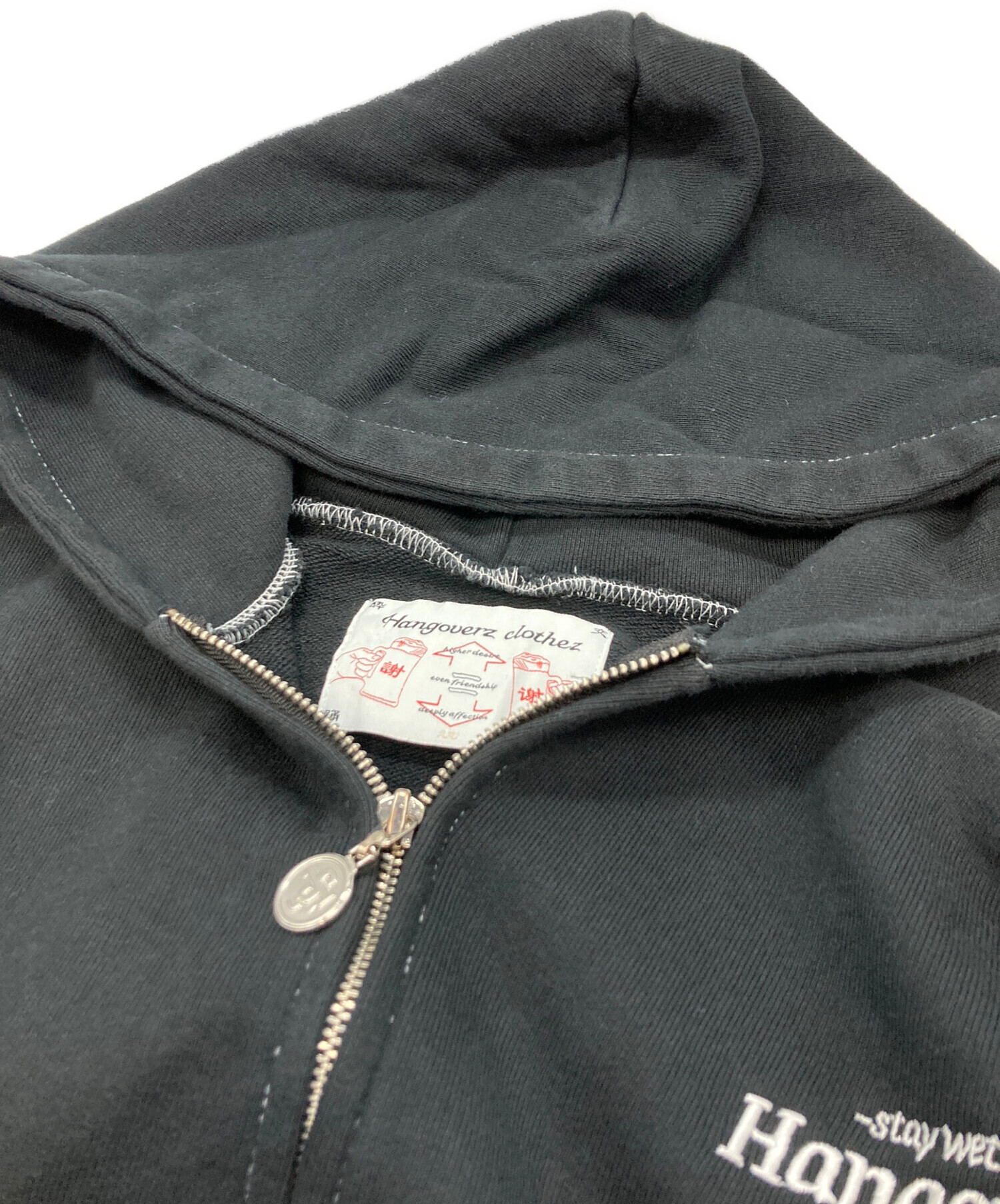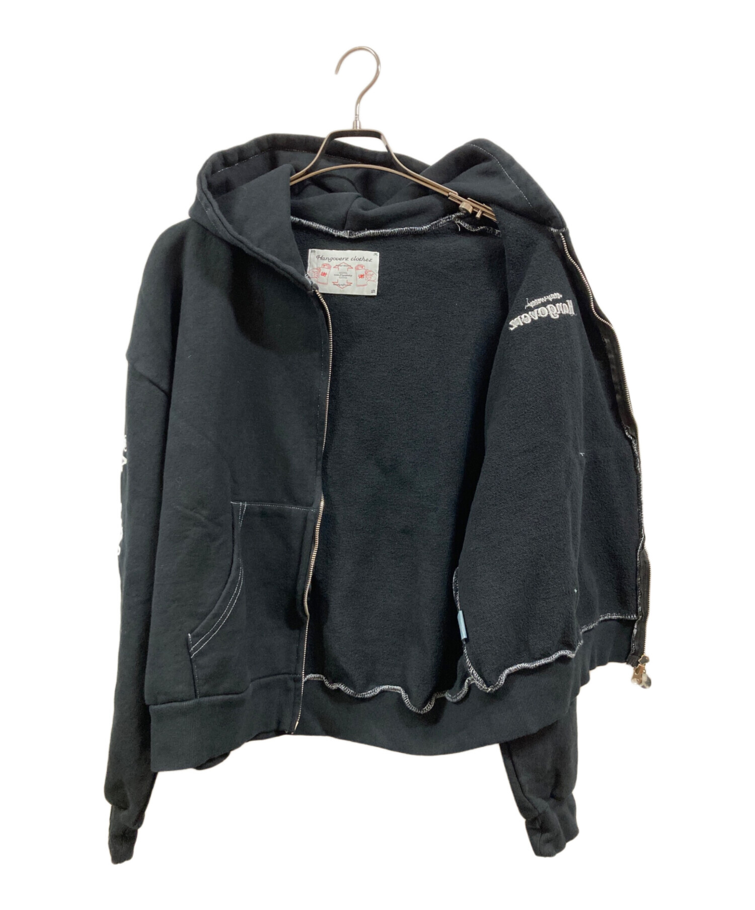 • hangoverz clothez(ハングオーバーズ)HANGOVERZ CLOTHEZ (ハングオーバーズ) ジップパーカー ブラック サイズ:Mの古着・服飾アイテム フード内毛羽立ち有