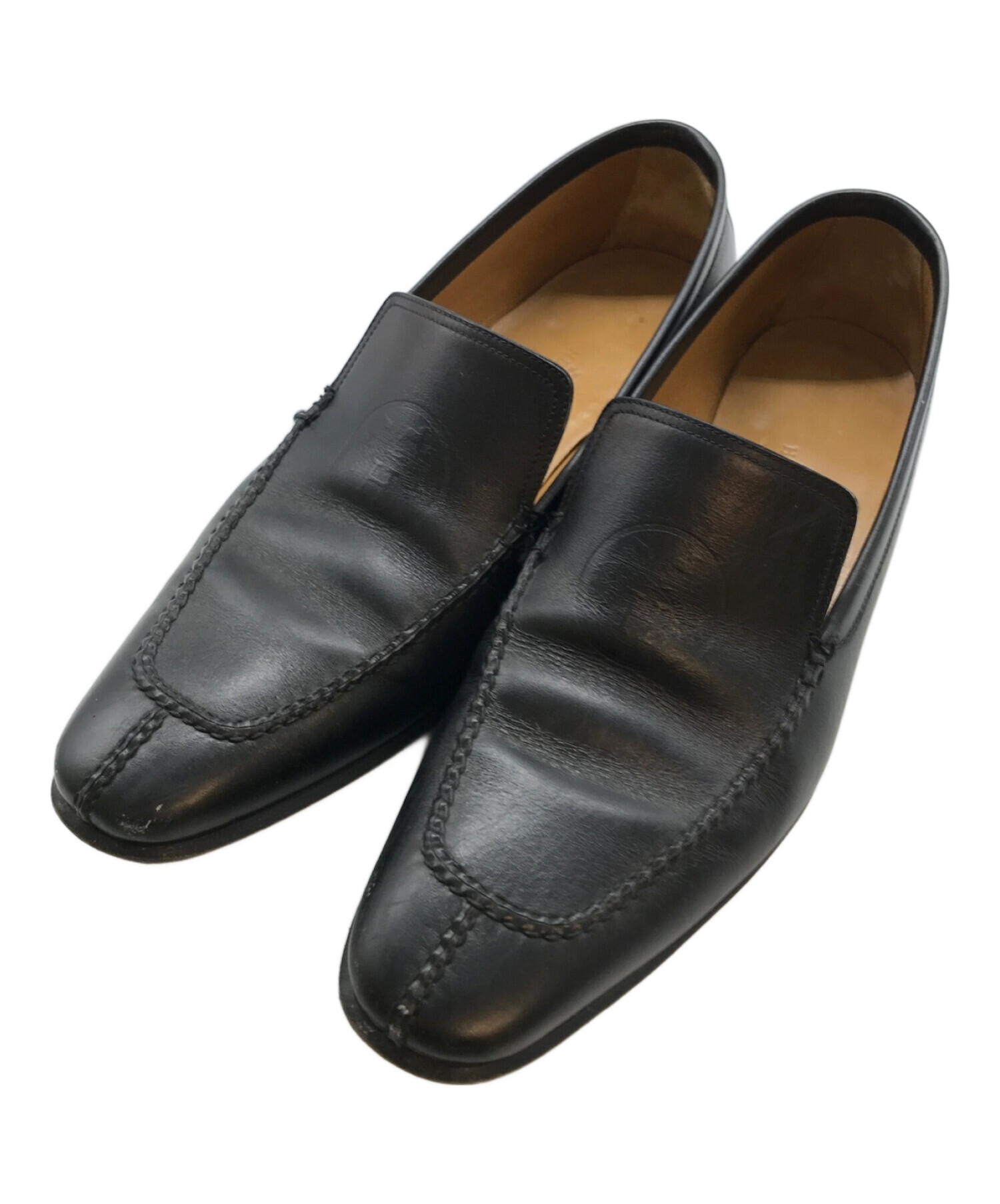 • HERMES(エルメス)HERMES (エルメス) ロゴ刻印レザーローファー ブラック サイズ:41の古着・服飾アイテム 右足横スレ有