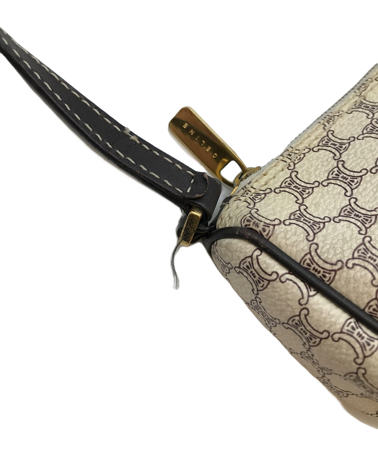 • CELINE(セリーヌ)CELINE (セリーヌ) マカダム柄ミニポーチ ホワイト サイズ:-の古着・服飾アイテム ハンドルダメージ有