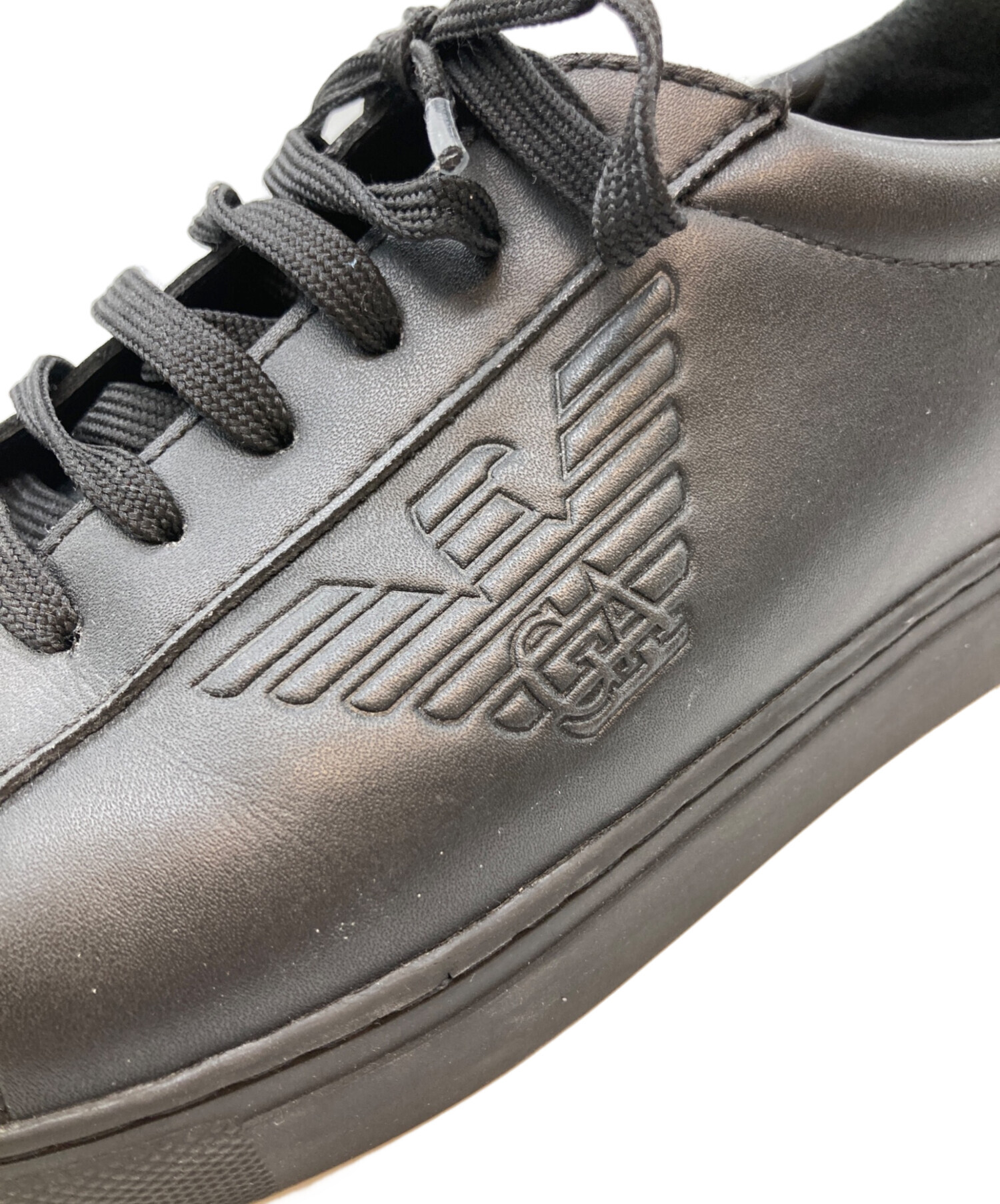 • EMPORIO ARMANI(エンポリオアルマーニ)EMPORIO ARMANI (エンポリオアルマーニ) ACTION LEATHER SNEAKER ブラック サイズ:26cmの古着・服飾アイテム 内側スレ有