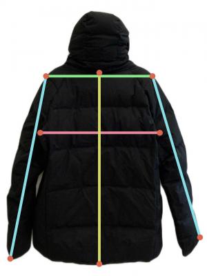 | 素材 | 表地 本体 複合繊維(ポリエステル)100% 内衿 アクリル 70% 毛 30% 裏地 ポリエステル 中綿 本体 ダウン 90% フェザー 10% フード口・脇身頃・袖下 ポリエステル 100% |