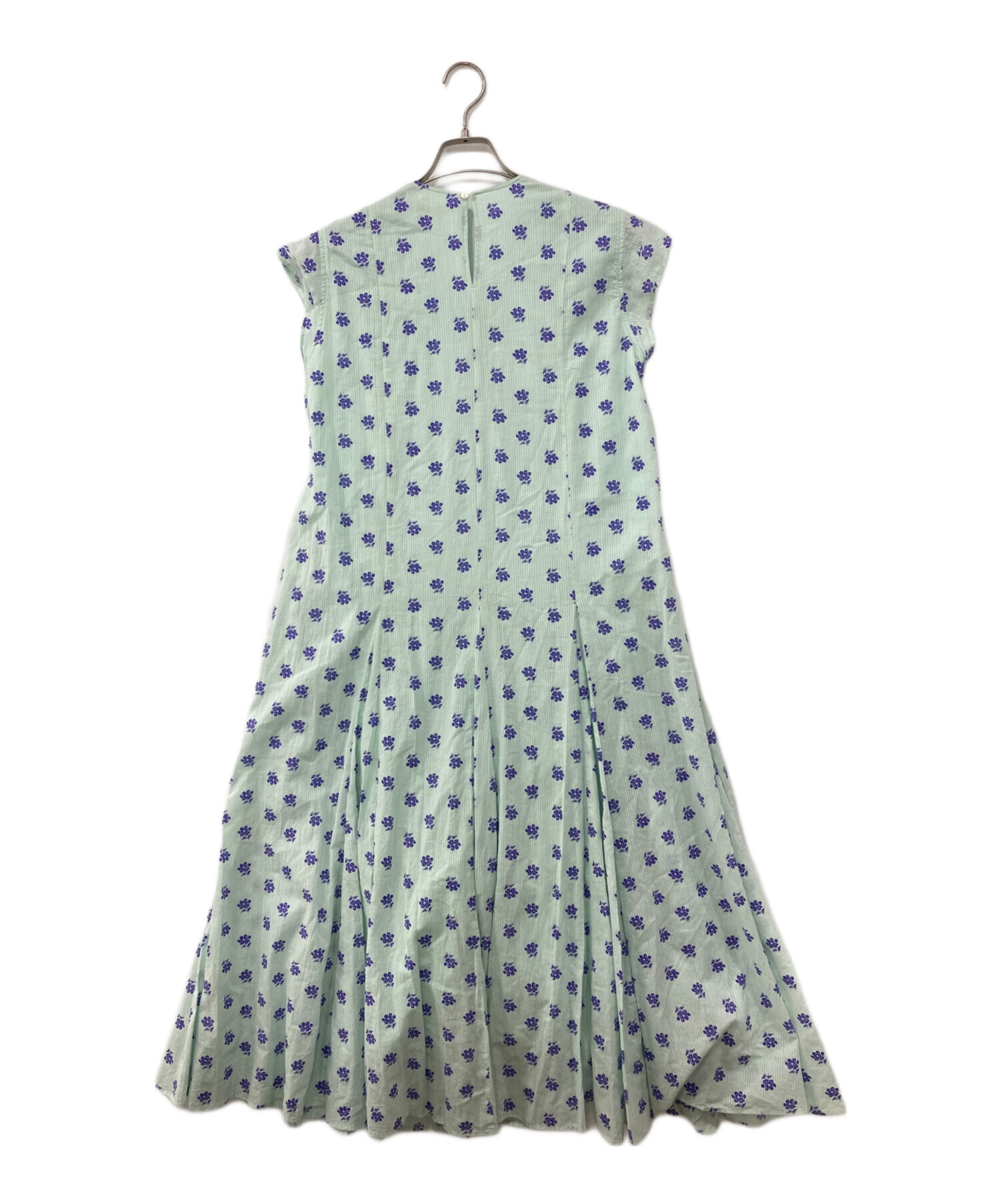 スタッフコメント ne quittez pas(ヌキテパ)のCotton Dobby Stripe Flower Print Gather Dressです。ミントグリーンを基調とした鮮やかな色彩と、ゆったりとした着丈が特徴のノースリーブワンピースです。