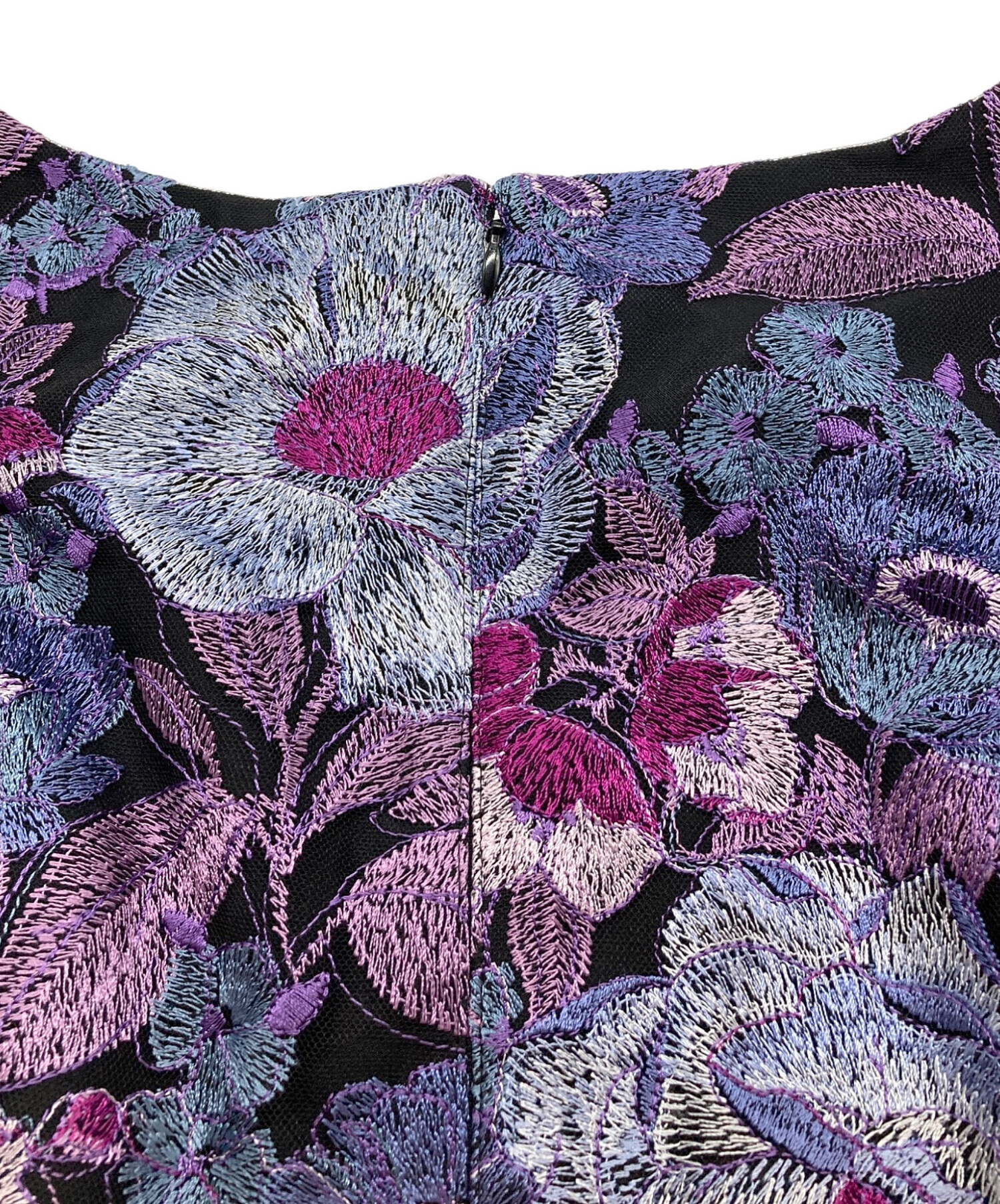 | 素材 | 表地 チュール ポリエステル 100% 刺繍糸1 レーヨン 100% 刺繍糸2 ポリエステル 100% 別布サテン ポリエステル 100% 別布 ジョーゼット ポリエステル 100% 裏地 ポリエステル 100% |
