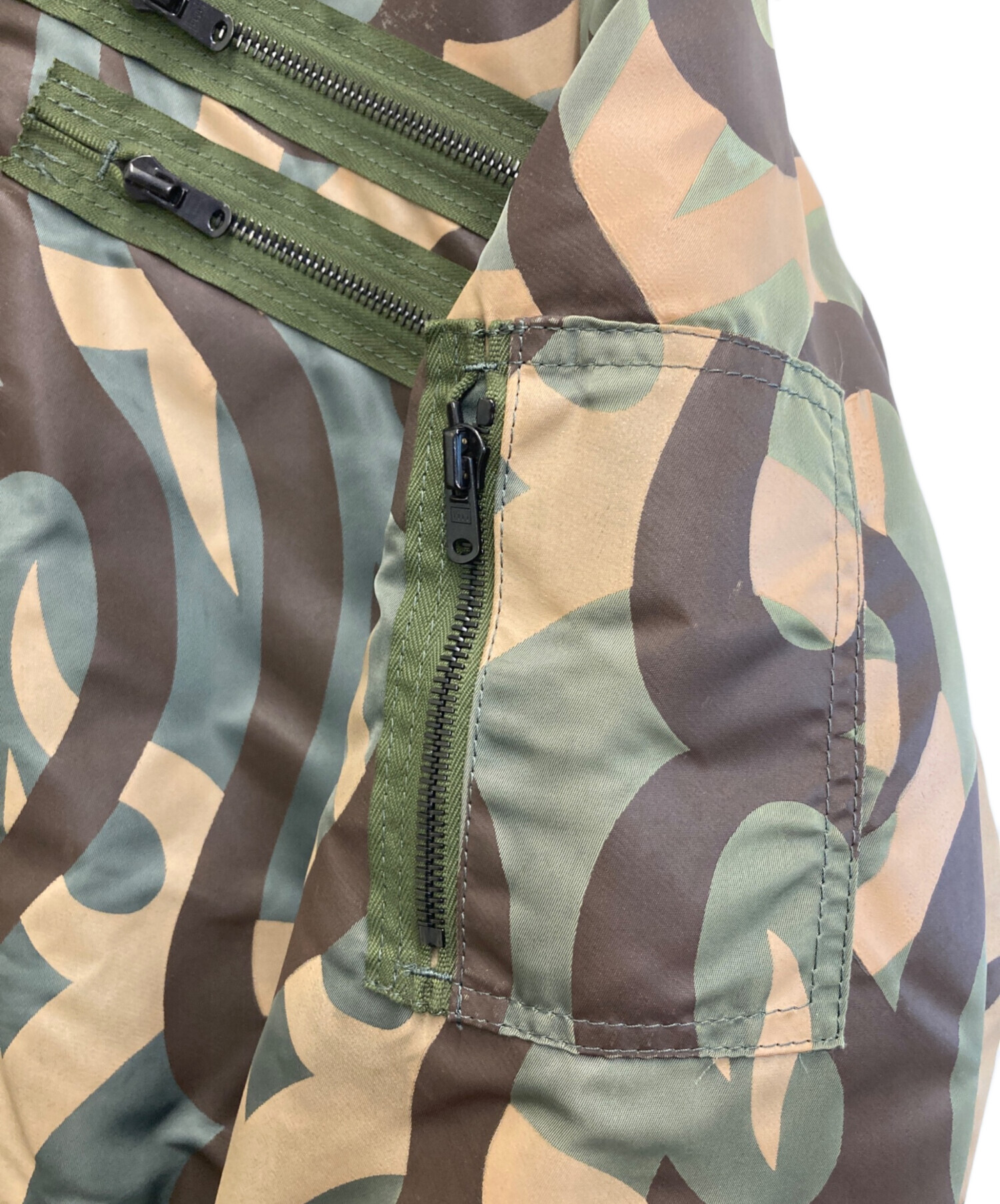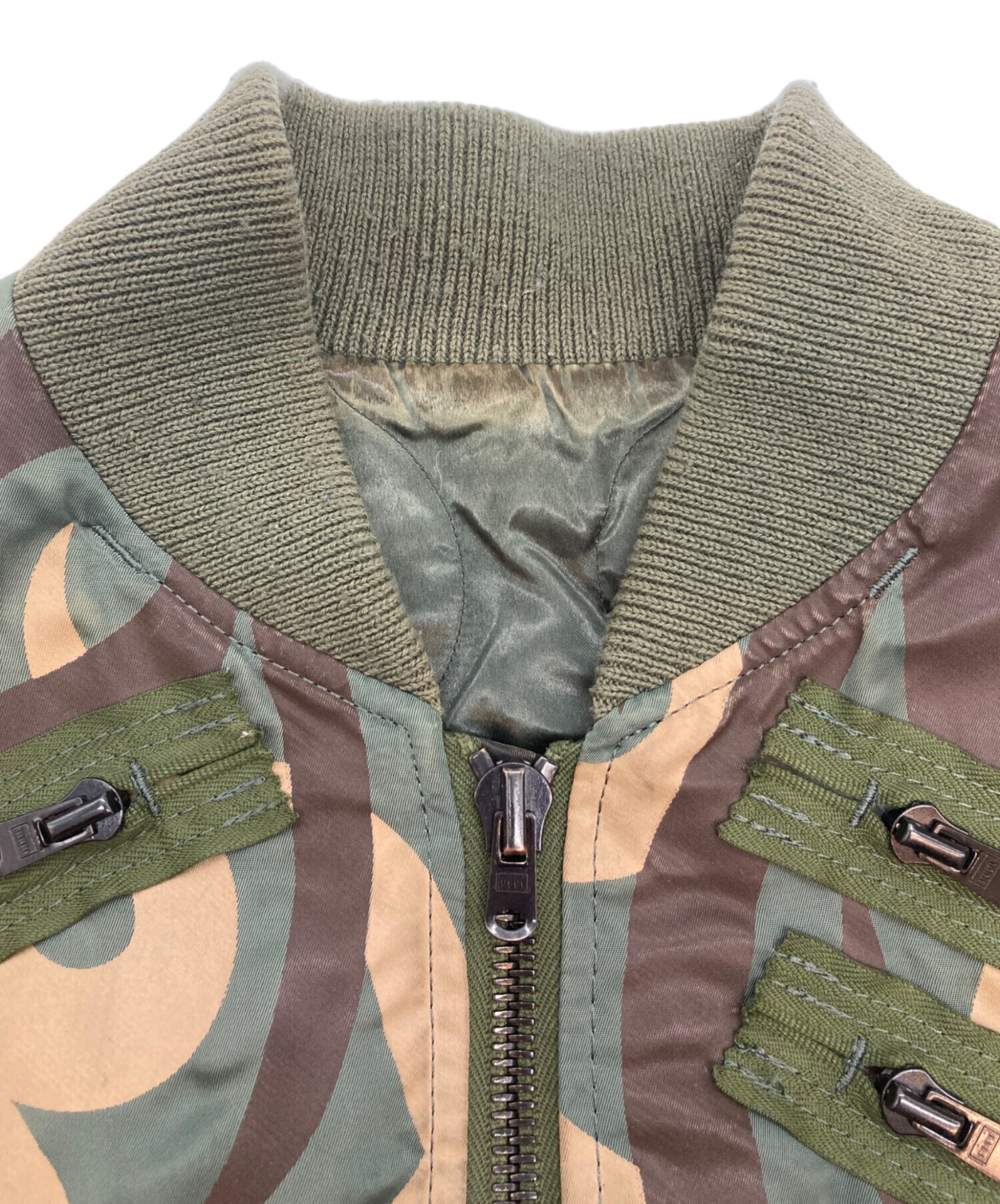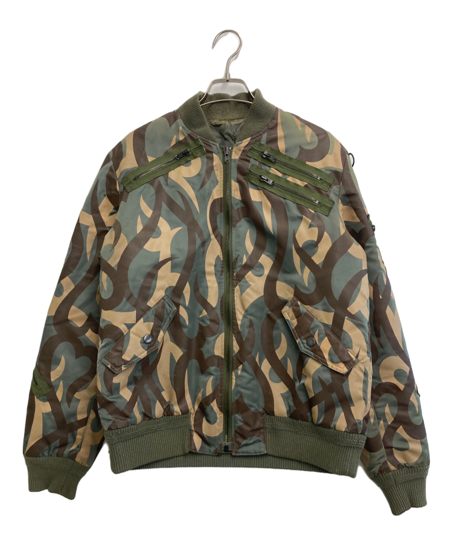 • NUMBER (N)INE(ナンバーナイン)NUMBER (N)INE (ナンバーナイン) ハートトライバルカモ MA-1 グリーン サイズ:3の古着・服飾アイテム 襟毛羽立ち有