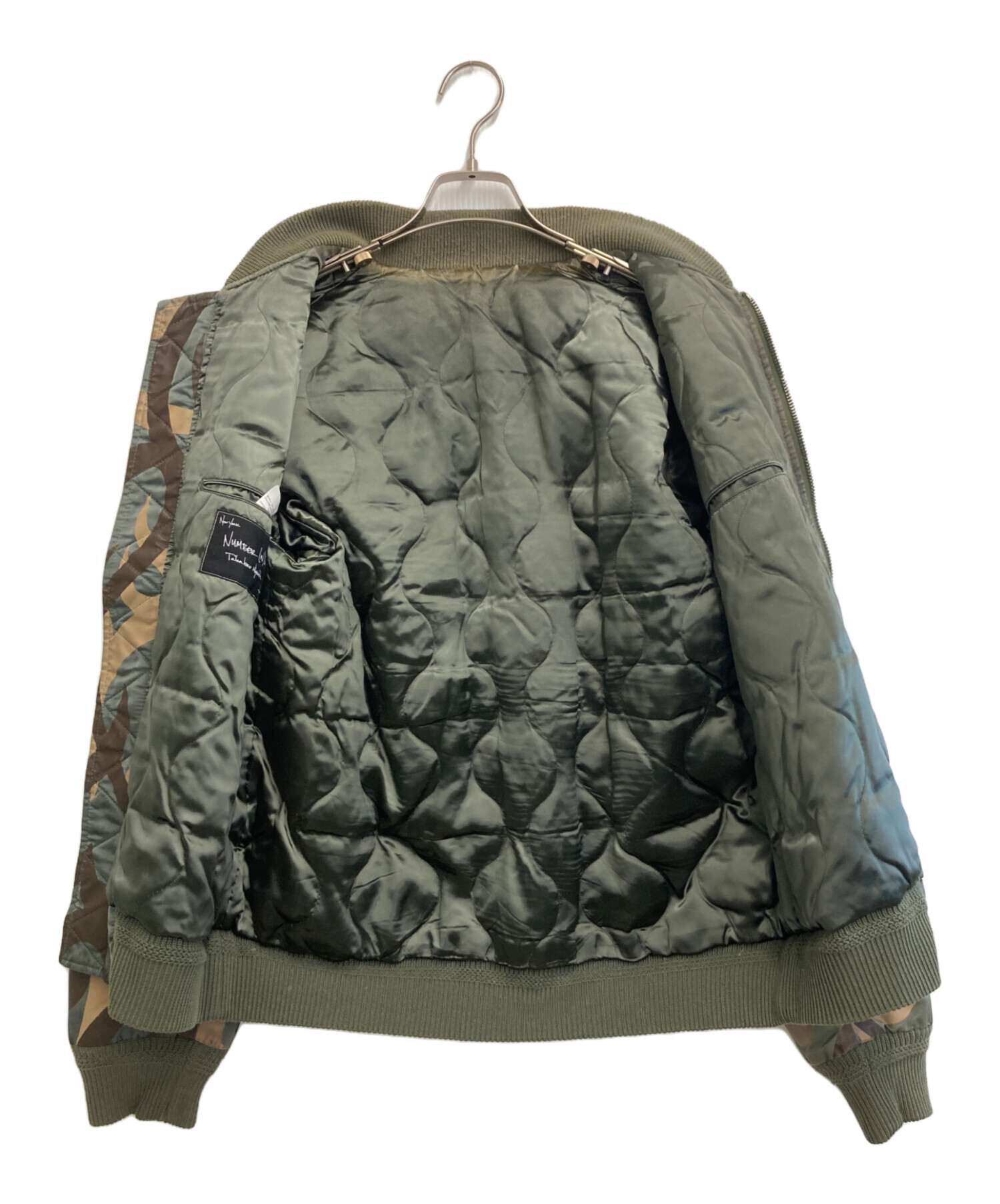 • NUMBER (N)INE(ナンバーナイン)NUMBER (N)INE (ナンバーナイン) ハートトライバルカモ MA-1 グリーン サイズ:3の古着・服飾アイテム ヤブレ有