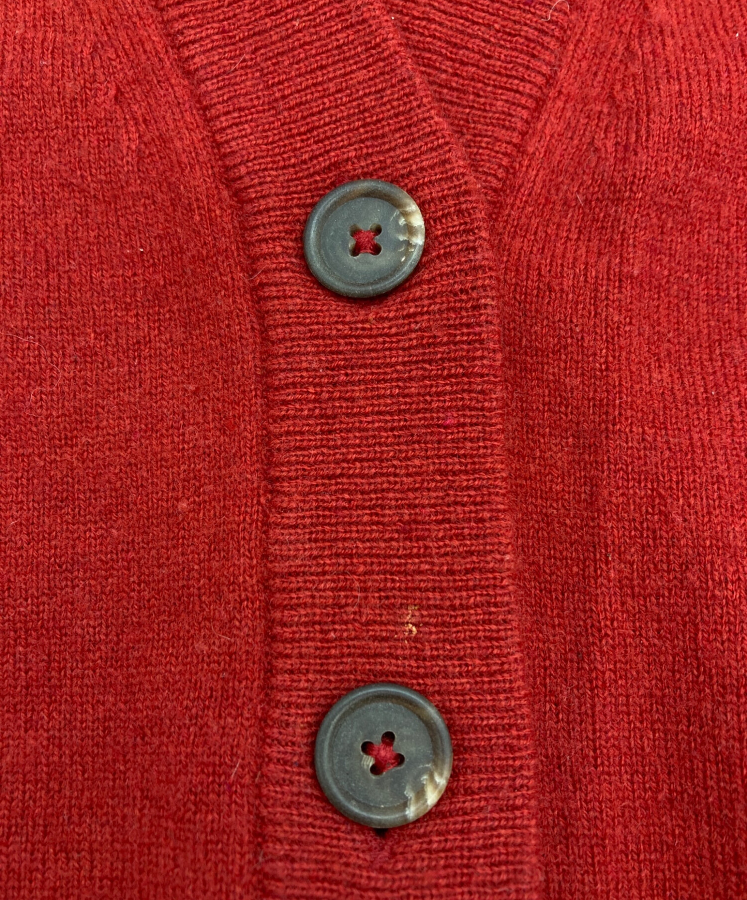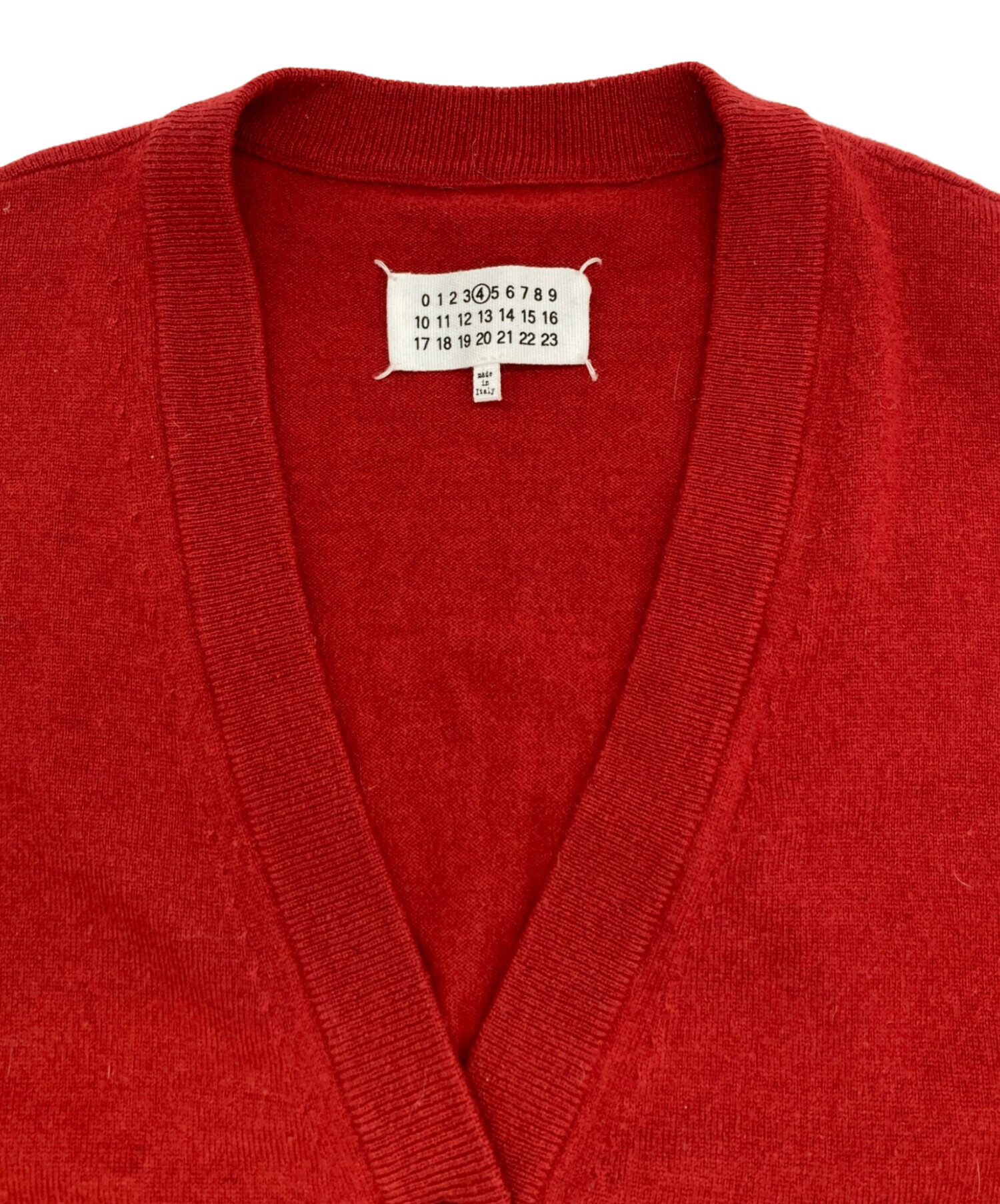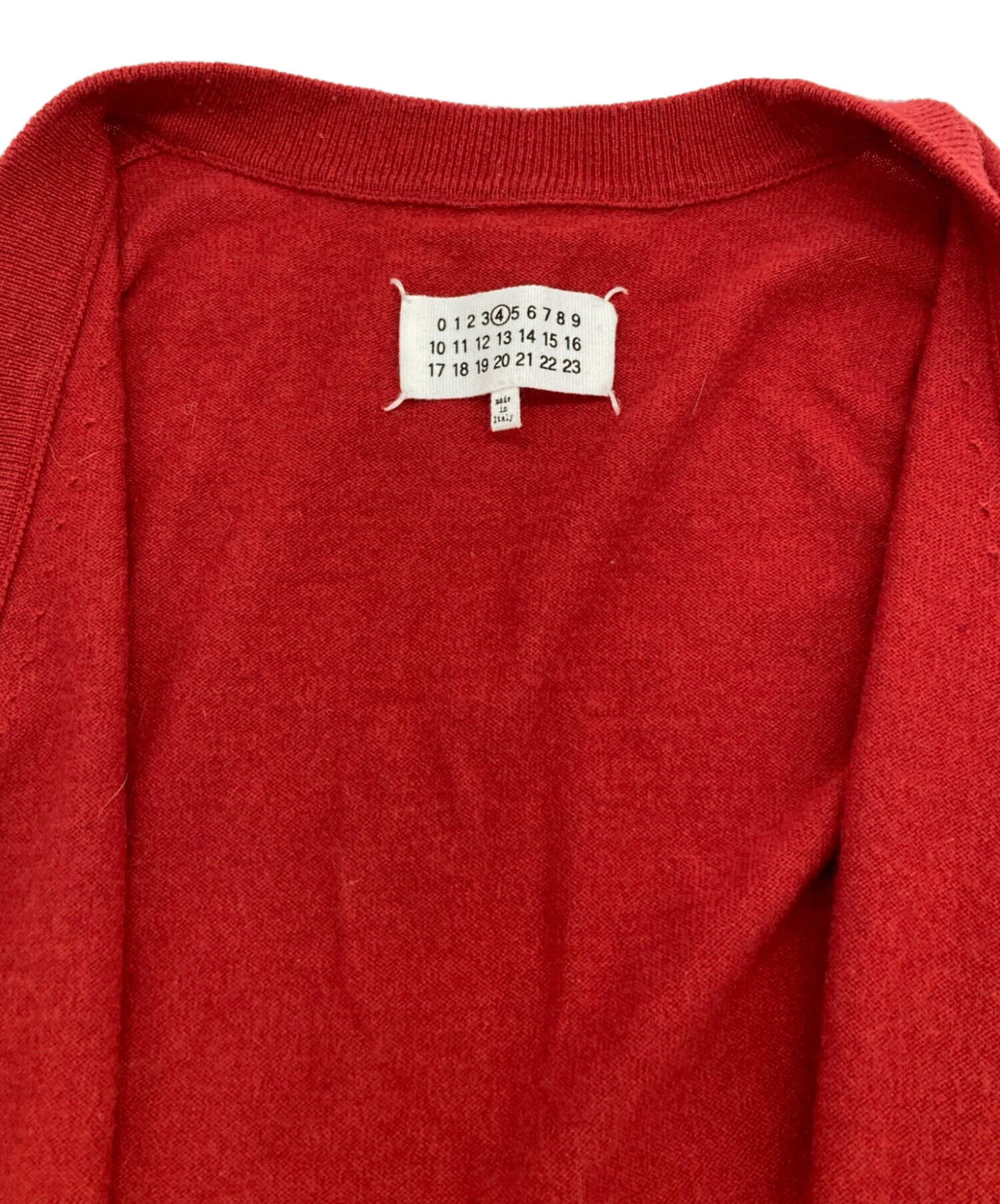 • Maison Margiela(メゾンマルジェラ)Maison Margiela (メゾンマルジェラ) 20AW Vネックカーディガン レッド サイズ:xsの古着・服飾アイテム バックホツレ有