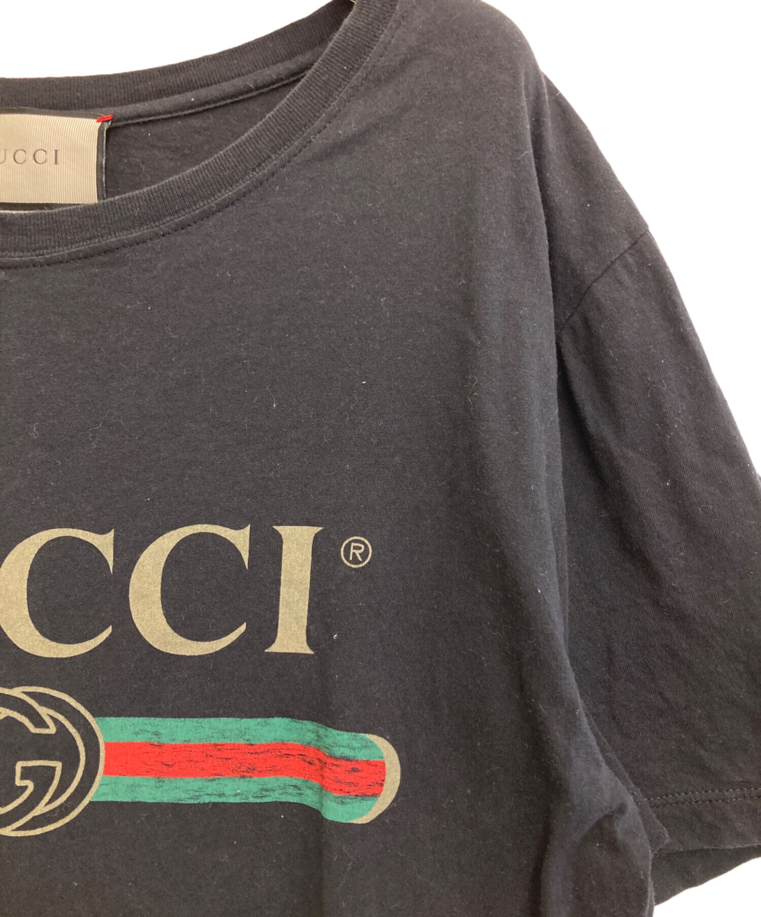 • GUCCI(グッチ)GUCCI (グッチ) ウォッシュド加工 オーバーサイズ半袖Tシャツ ブラック サイズ:-の古着・服飾アイテム 襟ヨゴレ有