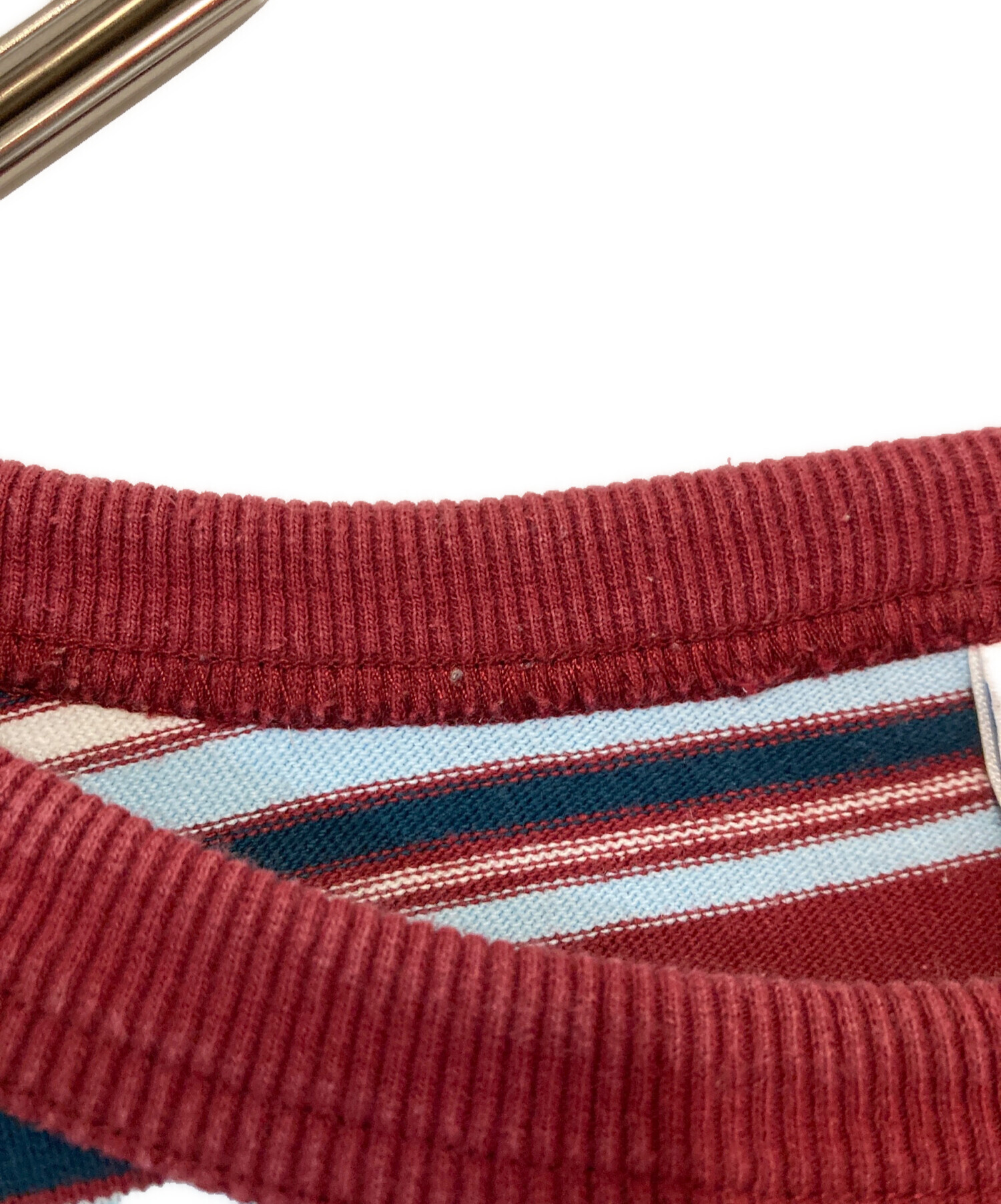 • KEBOZ(ケボズ)KEBOZ (ケボズ) ボーダーL/Sカットソー レッド×ブルー サイズ:LLの古着・服飾アイテム 襟元毛羽立ち有