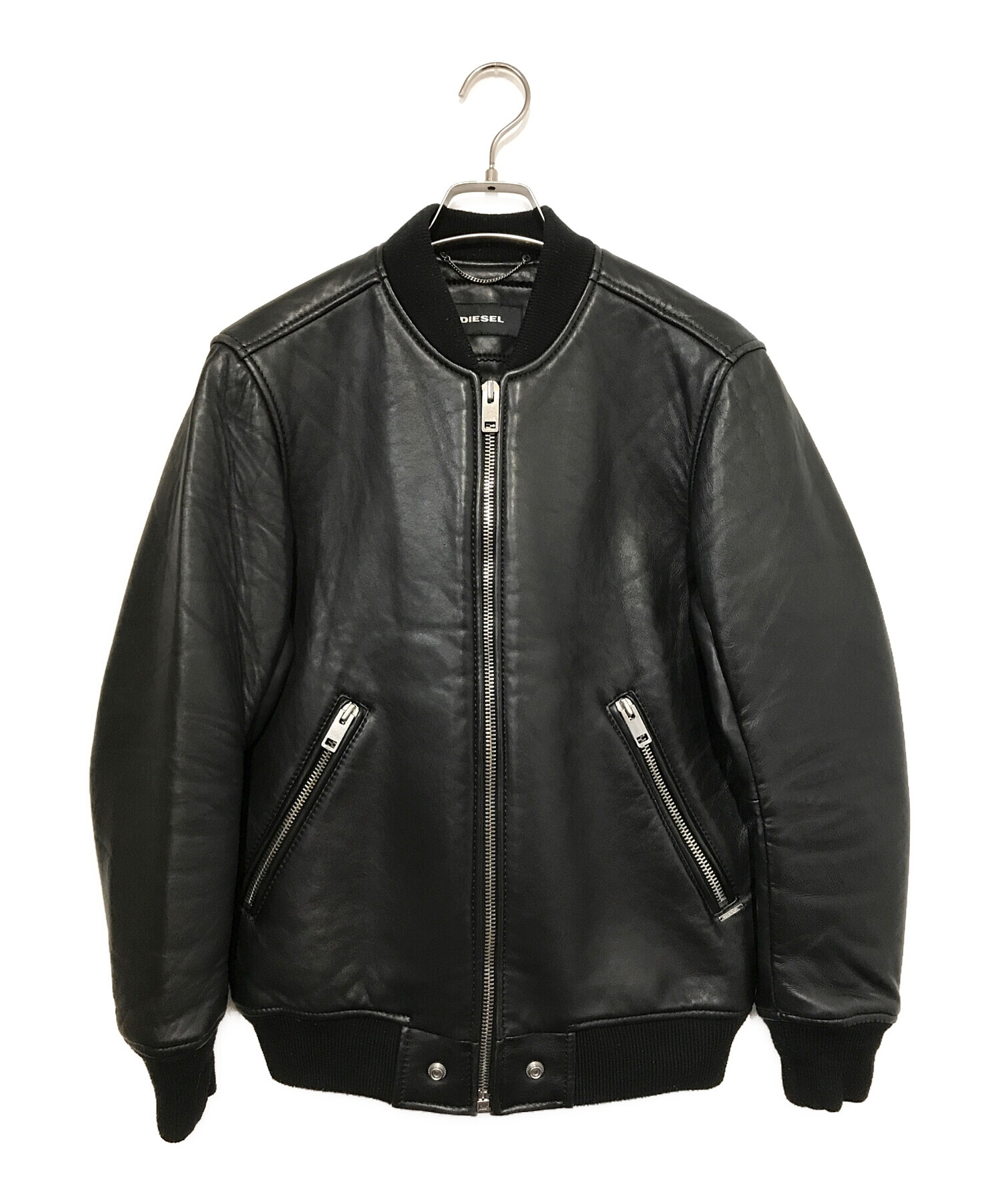 • DIESEL(ディーゼル)DIESEL (ディーゼル) シングルライダースジャケット ブラック サイズ:XSの古着・服飾アイテム 裾毛羽立ち・毛玉有