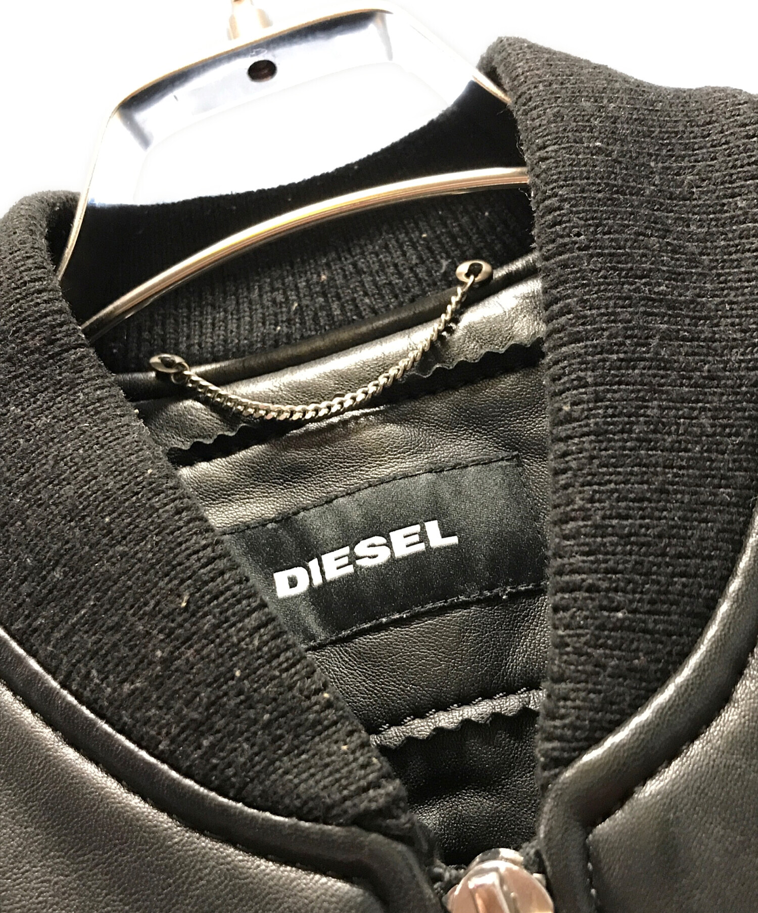 • DIESEL(ディーゼル)DIESEL (ディーゼル) シングルライダースジャケット ブラック サイズ:XSの古着・服飾アイテム 襟毛羽立ち・毛玉有