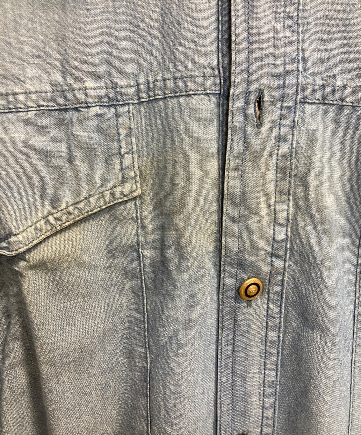 • VERSACE(ヴェルサーチェ)VERSACE (ヴェルサーチェ) デニムシャツ ブルー サイズ:XLの古着・服飾アイテム フロントヤケ有