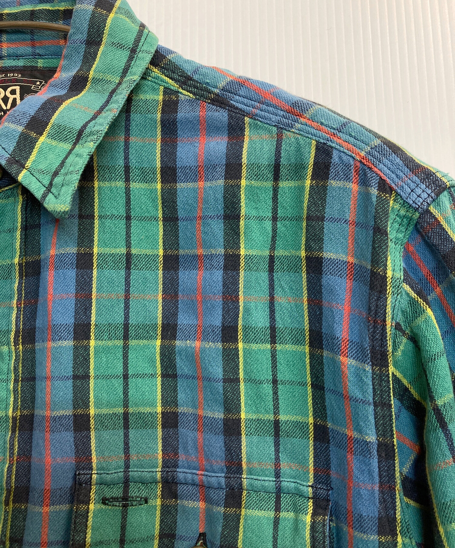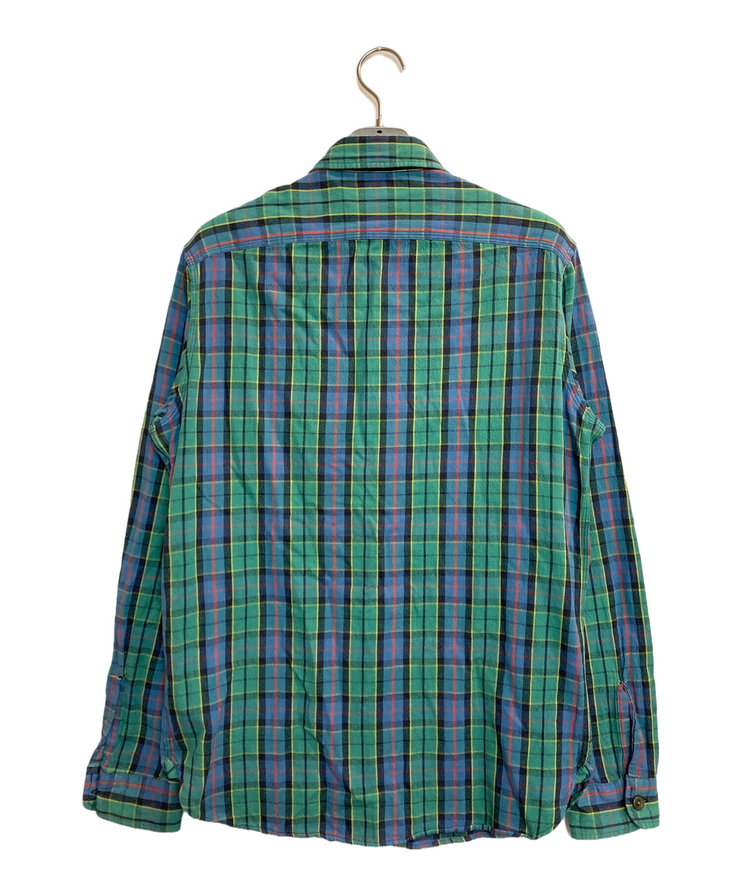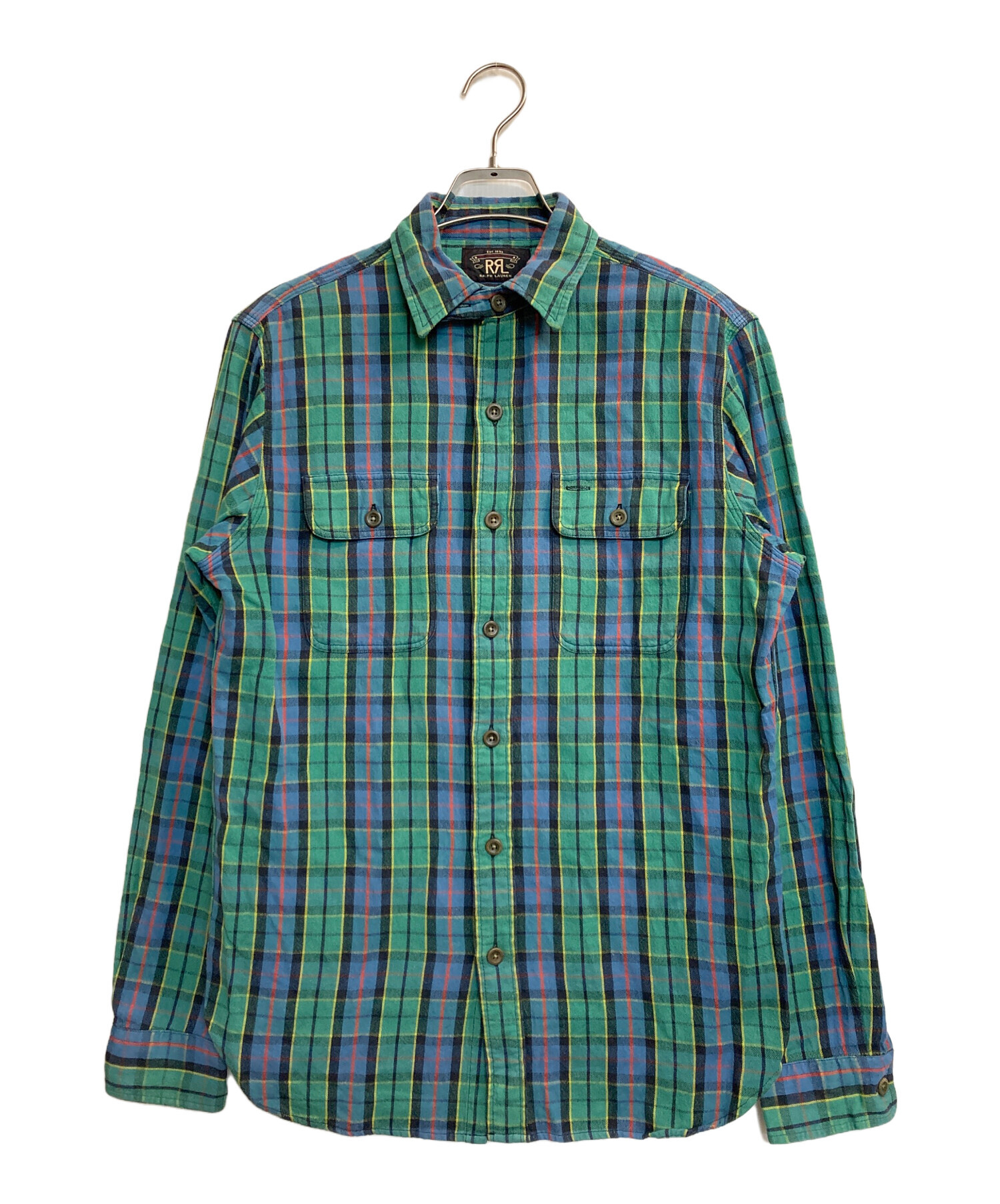 • RRL(ダブルアールエル)RRL (ダブルアールエル) チェックシャツ グリーン×ブルー サイズ:記載なし(実寸サイズ参考)の古着・服飾アイテム サイズタブ千切れ有