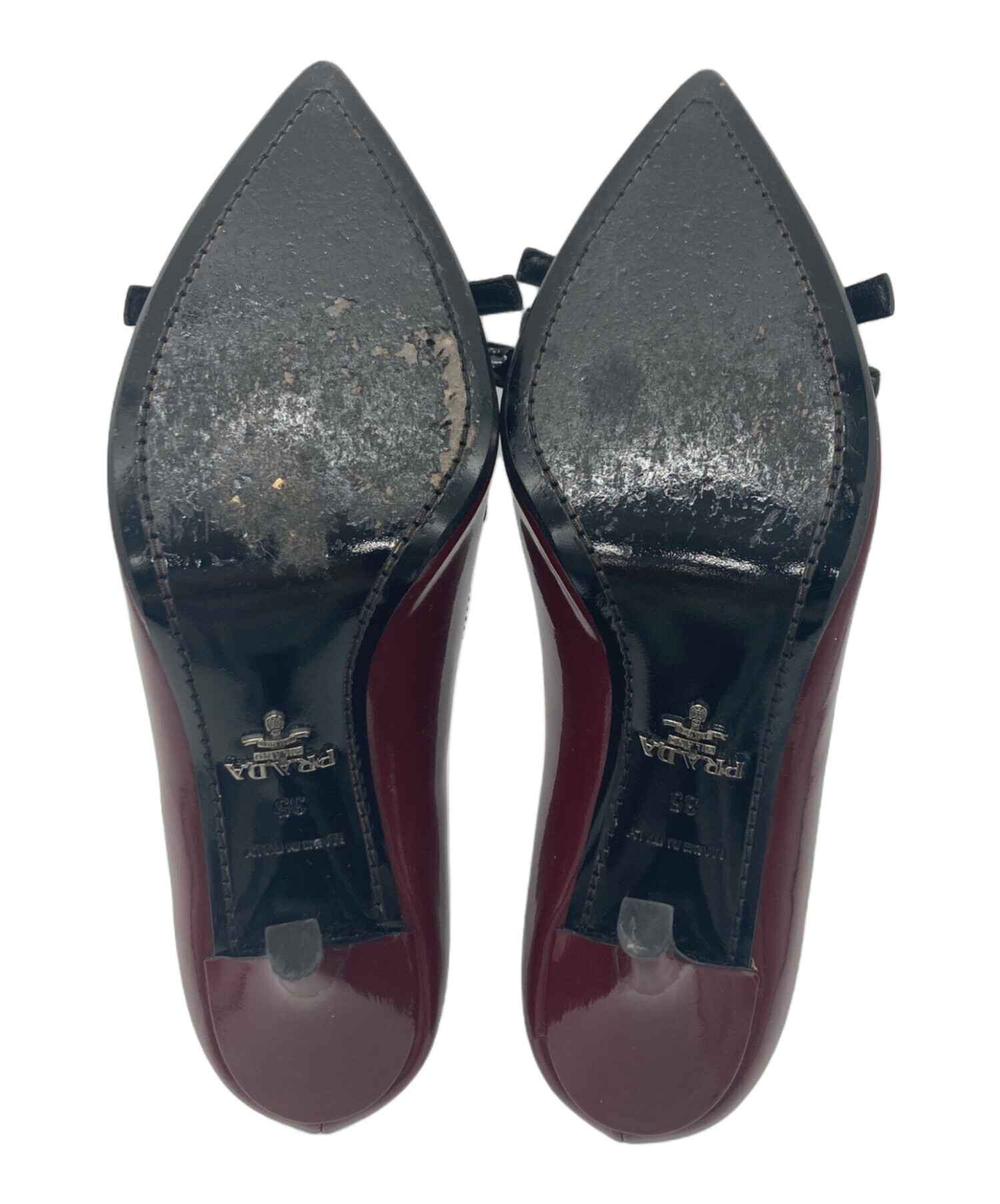 • PRADA(プラダ)PRADA (プラダ) パテントパンプス レッド サイズ:35の古着・服飾アイテム 内部汚れ・毛羽立ち有