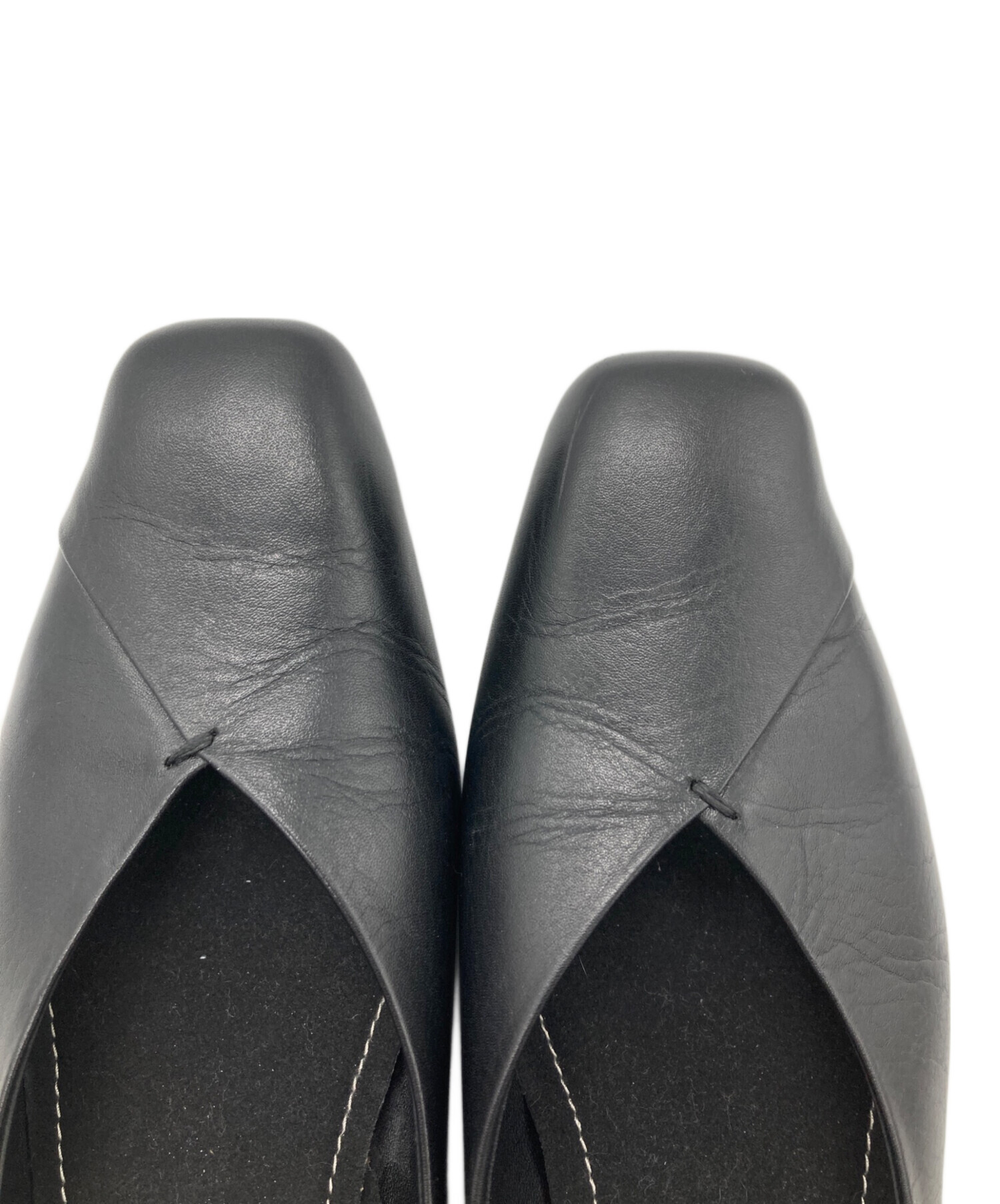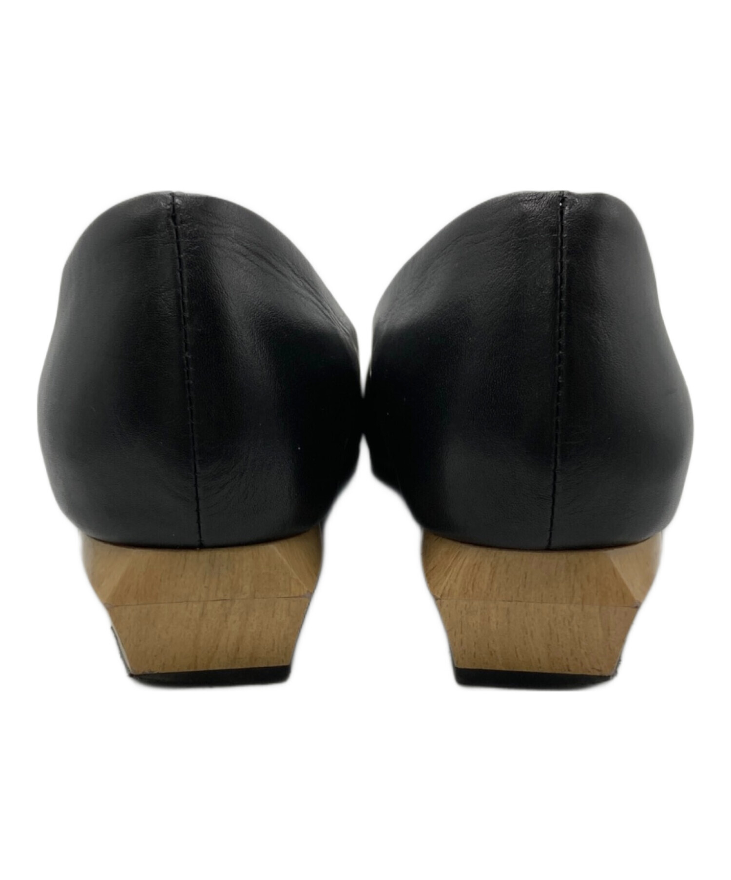 Vカットスクエアトゥウッドソールパンプス
