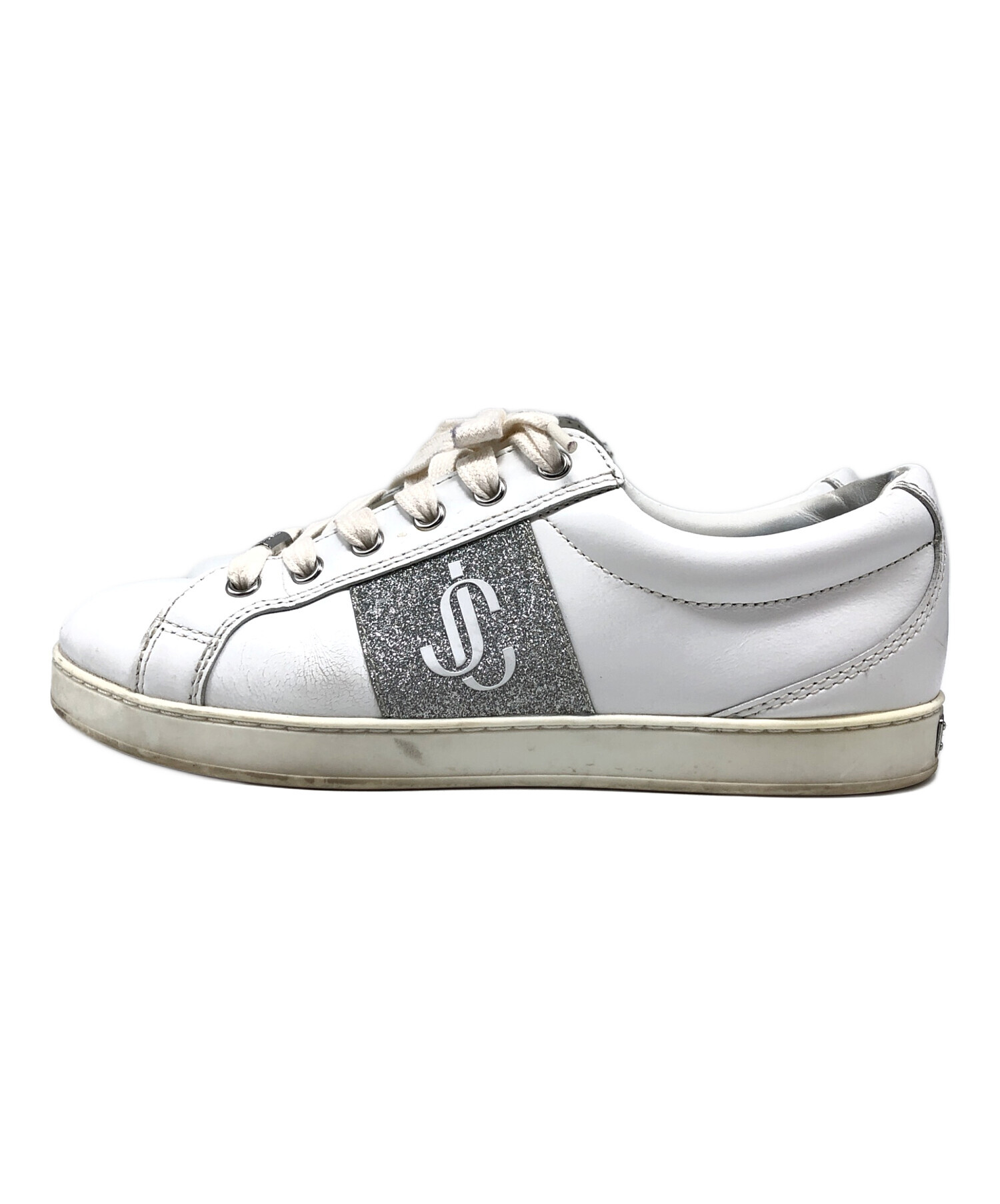 • JIMMY CHOO(ジミーチュウ)JIMMY CHOO (ジミーチュウ) グリッターロゴスニーカー ホワイト サイズ:36の古着・服飾アイテム 金具キズ・ヨゴレ