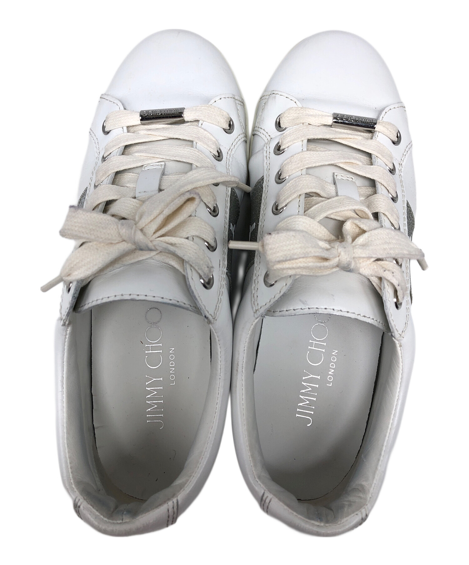 • JIMMY CHOO(ジミーチュウ)JIMMY CHOO (ジミーチュウ) グリッターロゴスニーカー ホワイト サイズ:36の古着・服飾アイテム 内部ヨゴレ