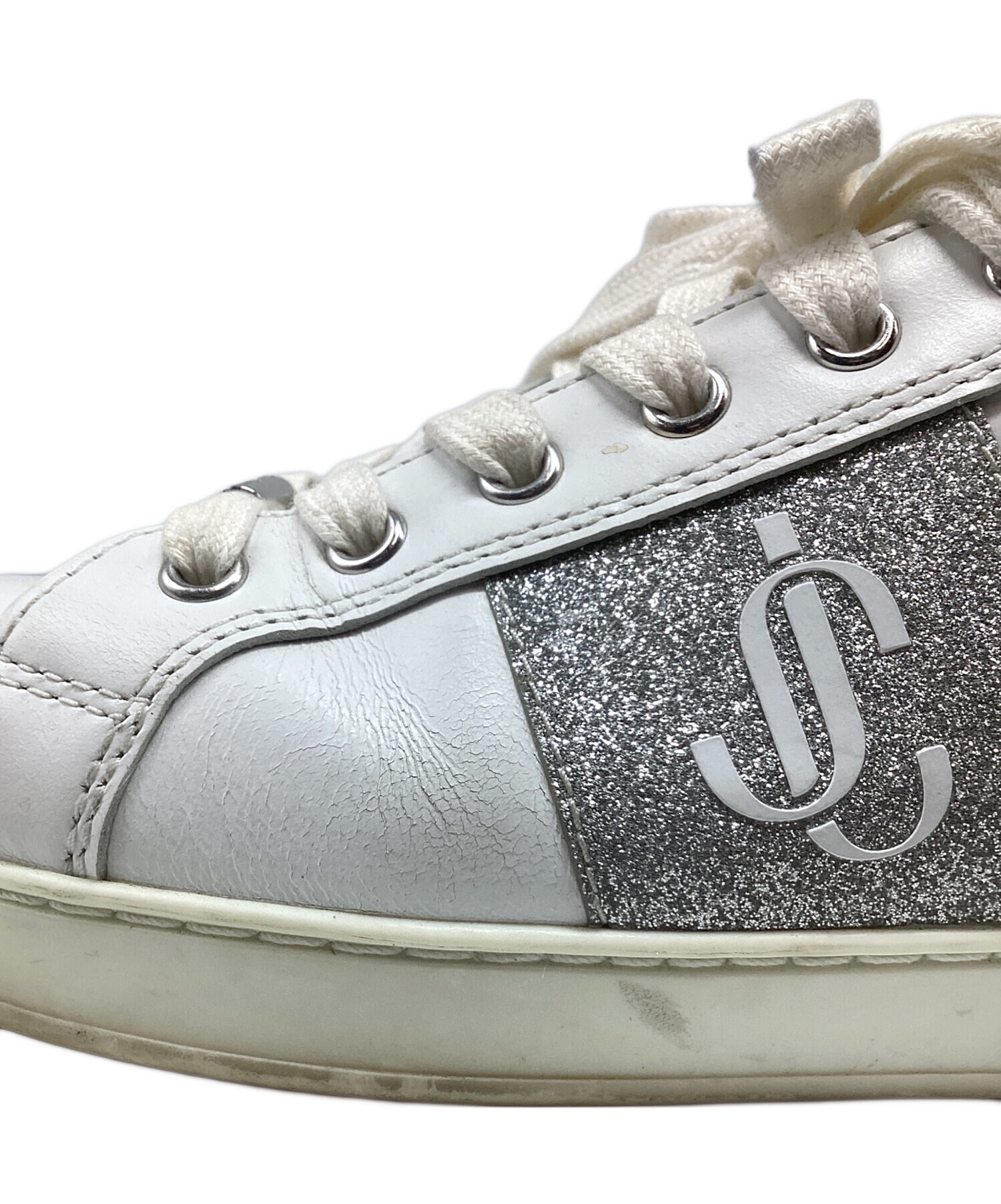 • JIMMY CHOO(ジミーチュウ)JIMMY CHOO (ジミーチュウ) グリッターロゴスニーカー ホワイト サイズ:36の古着・服飾アイテム 割れ