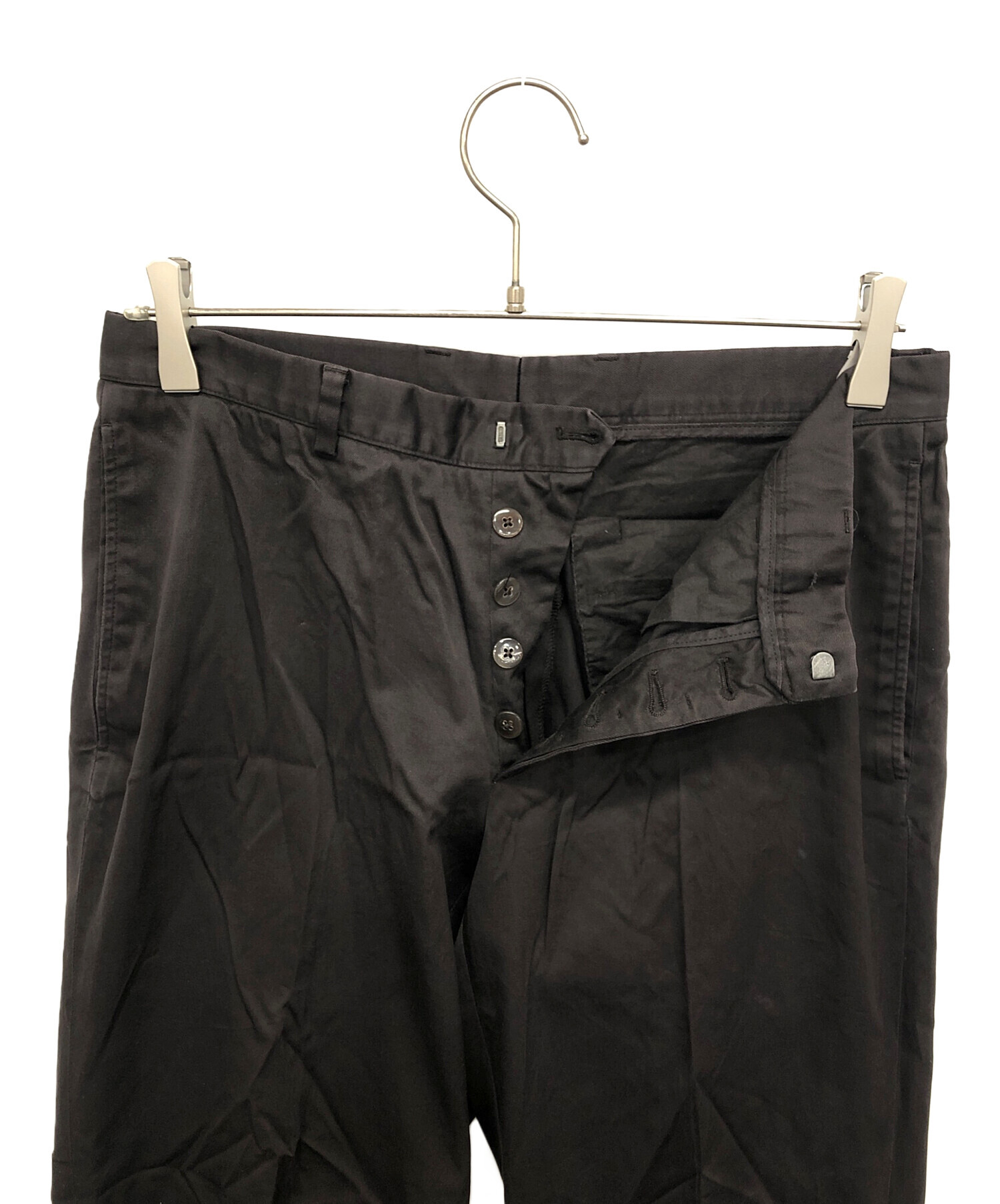 • JIL SANDER(ジルサンダー)JIL SANDER (ジルサンダー) コットンタックパンツ ブラック サイズ:46の古着・服飾アイテム ウエスト裏ボタン欠損