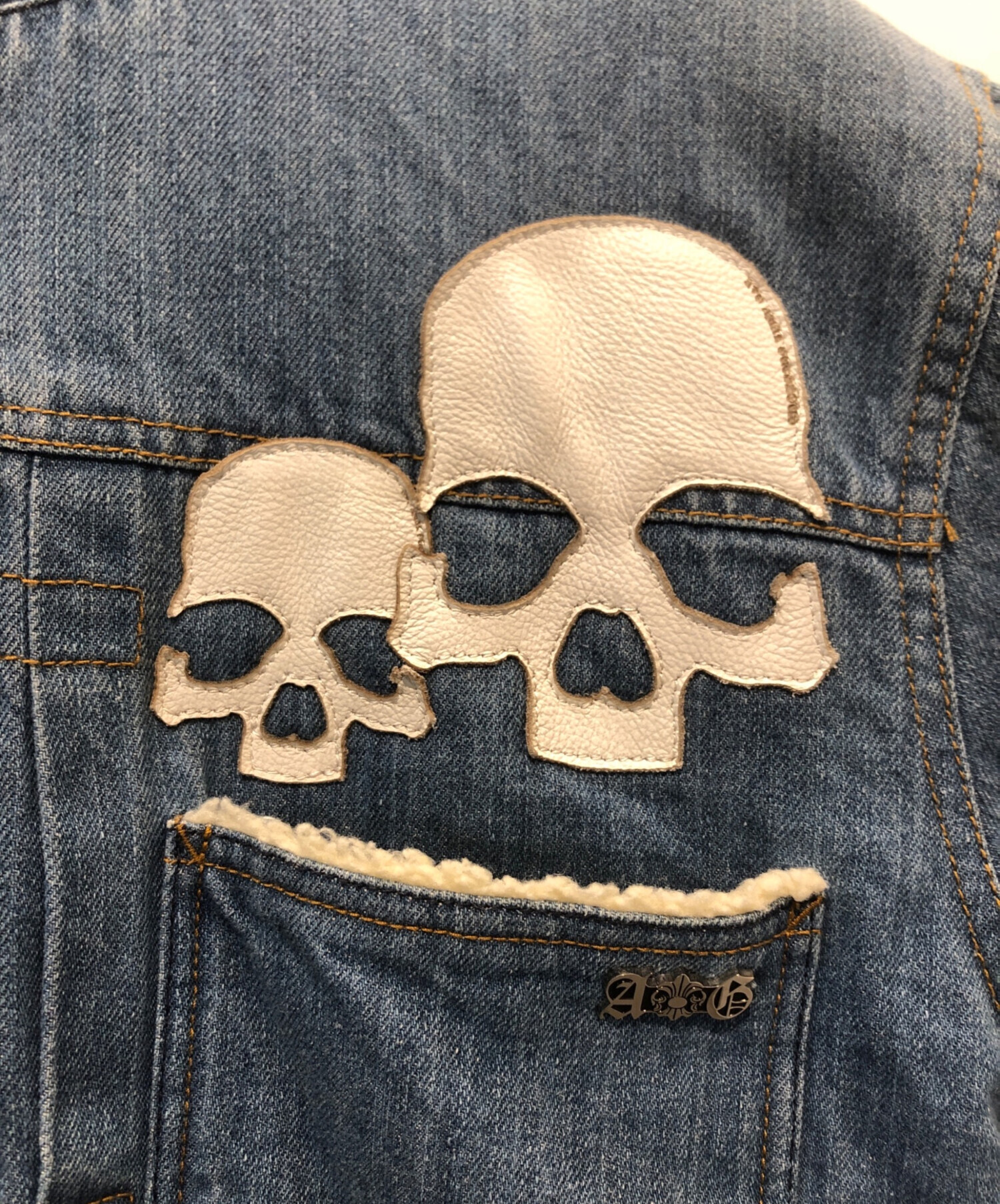 スカルレザーパッチデニムボアジャケット