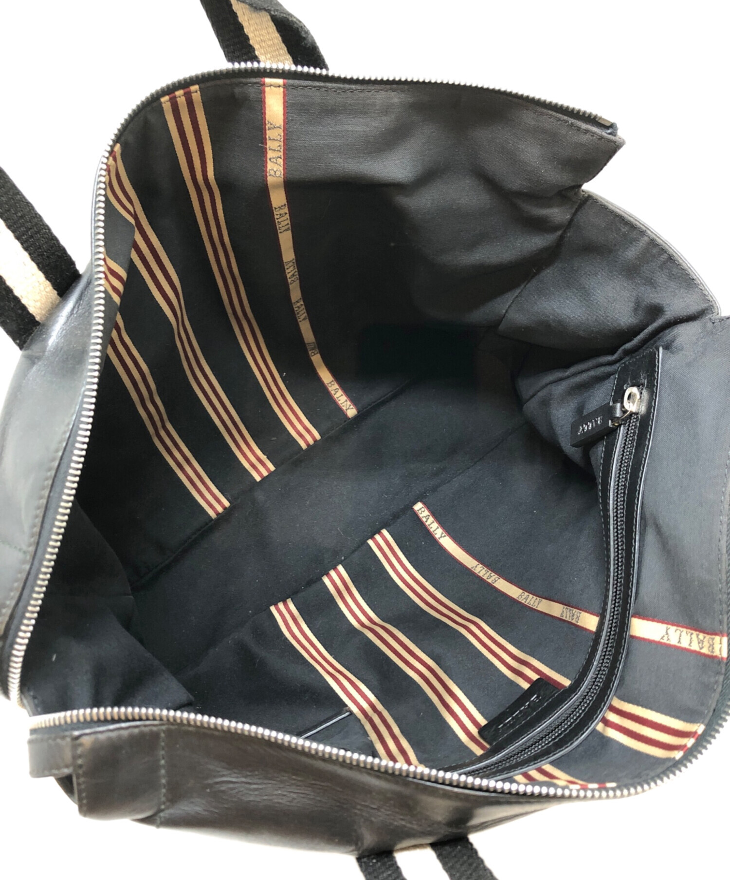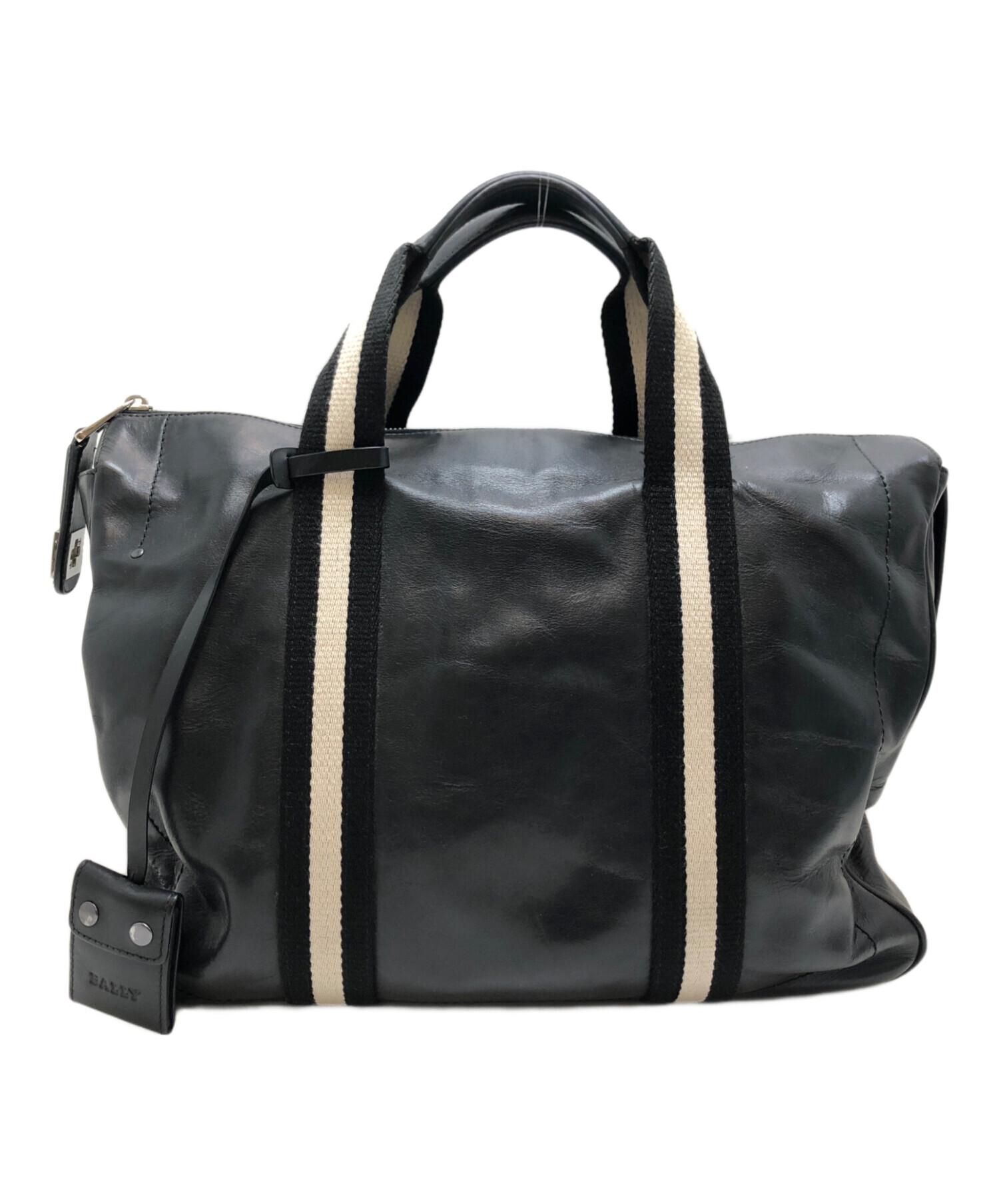 • BALLY(バリー)BALLY (バリー) レザーストライプビジネスバッグ ブラックの古着・服飾アイテム 持ち手スレ