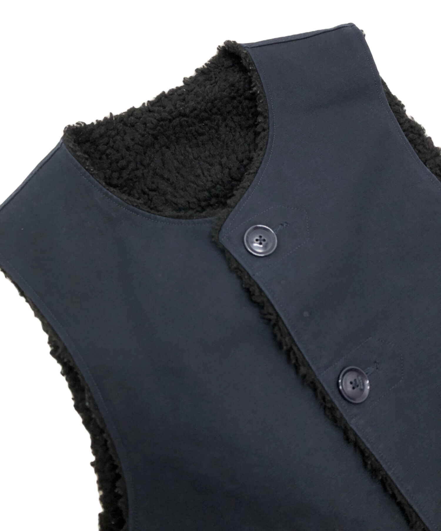 • Engineered Garments(エンジニアドガーメンツ)Engineered Garments (エンジニアドガーメンツ) リバーシブルボアベスト ネイビー サイズ:Sの古着・服飾アイテム フロントヨゴレ
