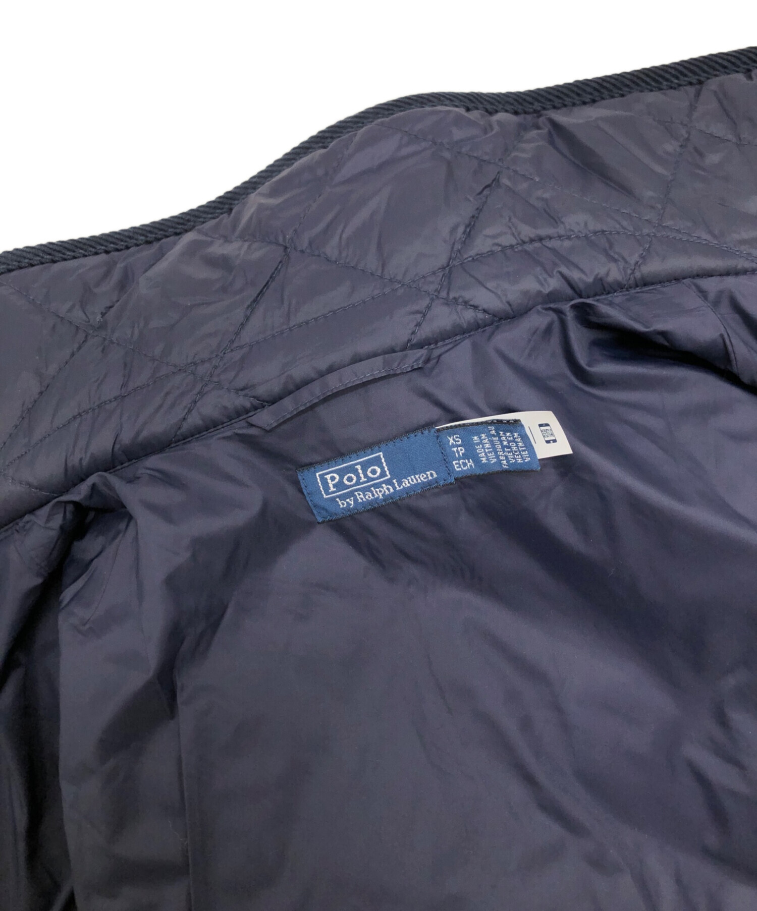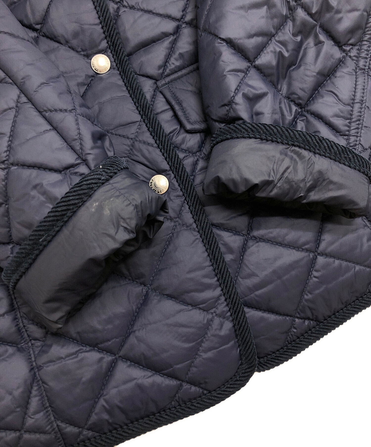 • POLO RALPH LAUREN(ポロ・ラルフローレン)POLO RALPH LAUREN (ポロ・ラルフローレン) キルティングバーンジャケット ネイビー サイズ:XSの古着・服飾アイテム 袖・袖裏ヨゴレ