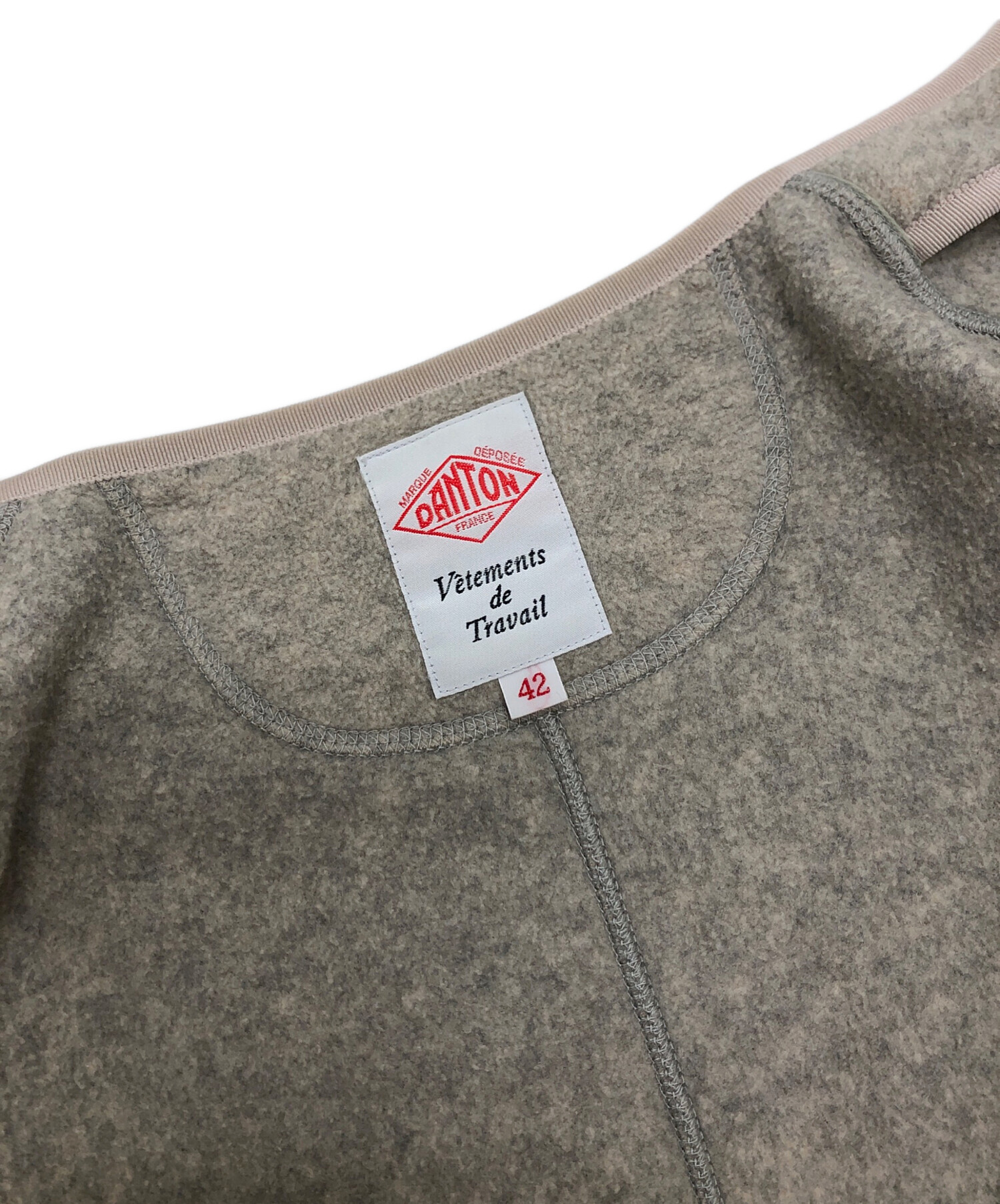 • DANTON(ダントン)DANTON (ダントン) FLEECE COLLARLESS JACKET ベージュ サイズ:42の古着・服飾アイテム 袖口・袖裏ヨゴレ