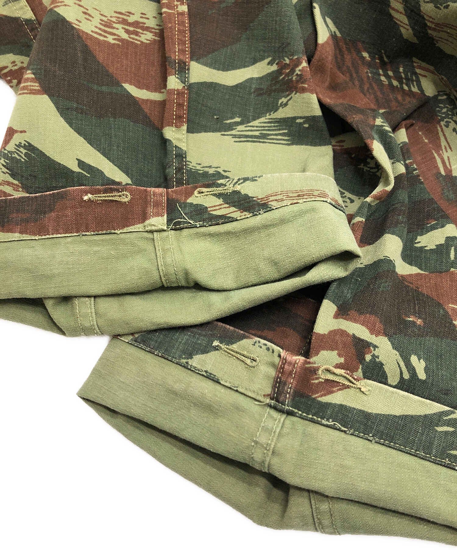 • French Army(フランス軍)French Army (フランス軍) パラトルーパーパンツ カーキ サイズ:11(75CM)の古着・服飾アイテム 裾裏アタリ