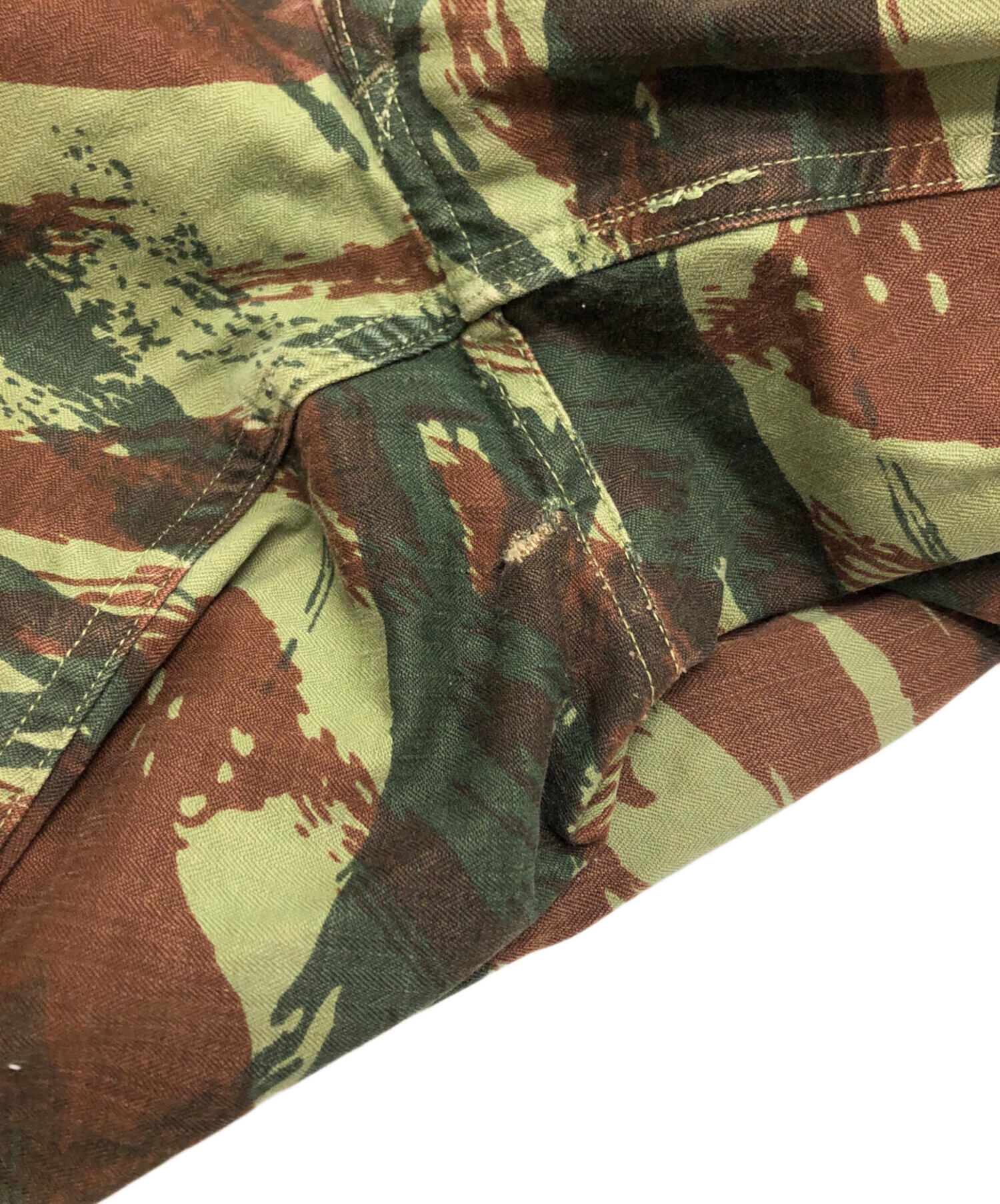 • French Army(フランス軍)French Army (フランス軍) パラトルーパーパンツ カーキ サイズ:11(75CM)の古着・服飾アイテム 股部分リペア