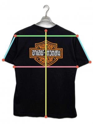 • HARLEY-DAVIDSON(ハーレーダビッドソン)HARLEY-DAVIDSON (ハーレーダビッドソン) タイ語ロゴ プリントTシャツ ブラック サイズ:不明の古着・服飾アイテム 背面ヨゴレ有り
