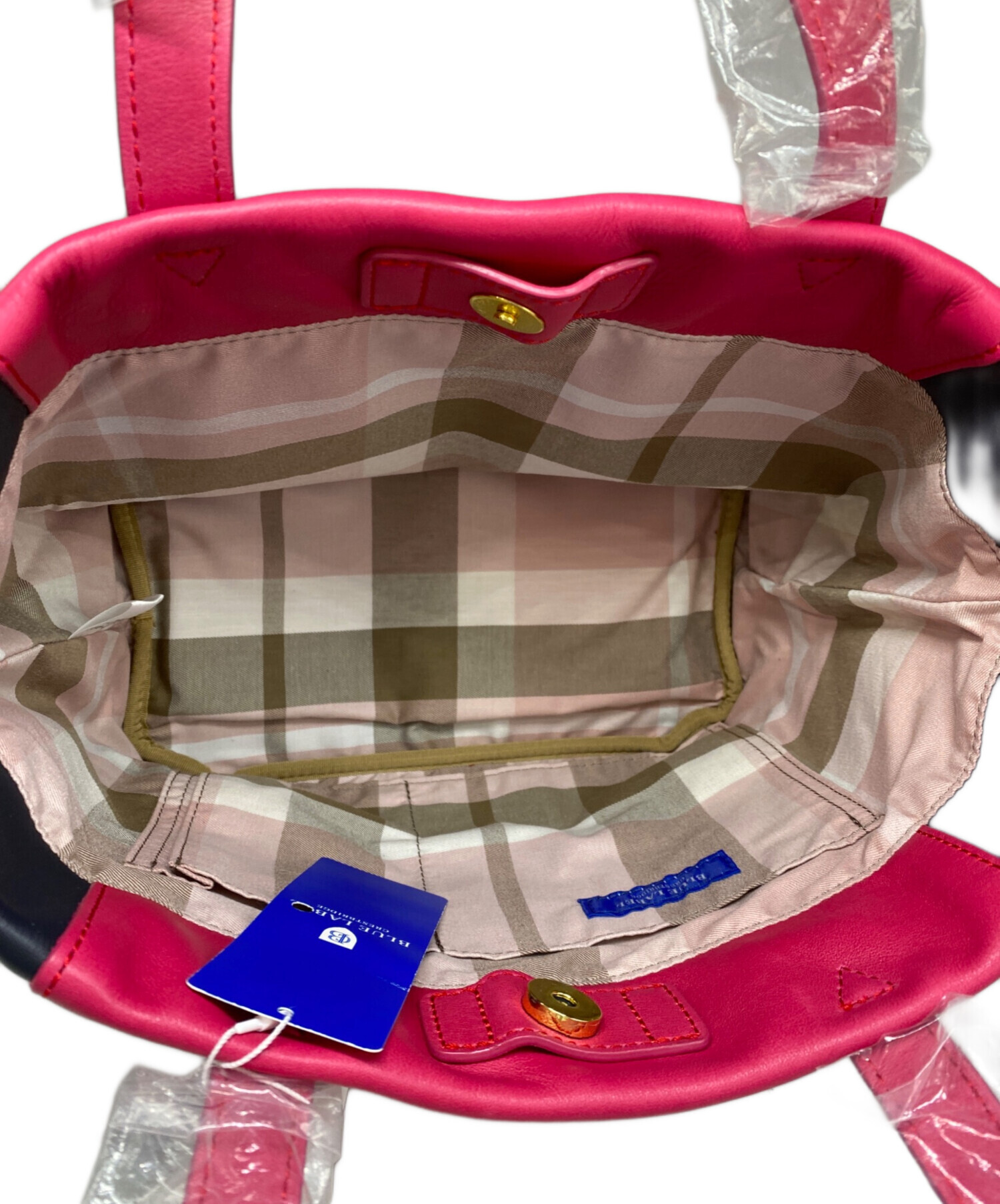 • BLUE LABEL CRESTBRIDGE(ブルーレーベルクレストブリッジ)BLUE LABEL CRESTBRIDGE (ブルーレーベルクレストブリッジ) レザートートバッグ ネイビー×ピンクの古着・服飾アイテム スレ有り