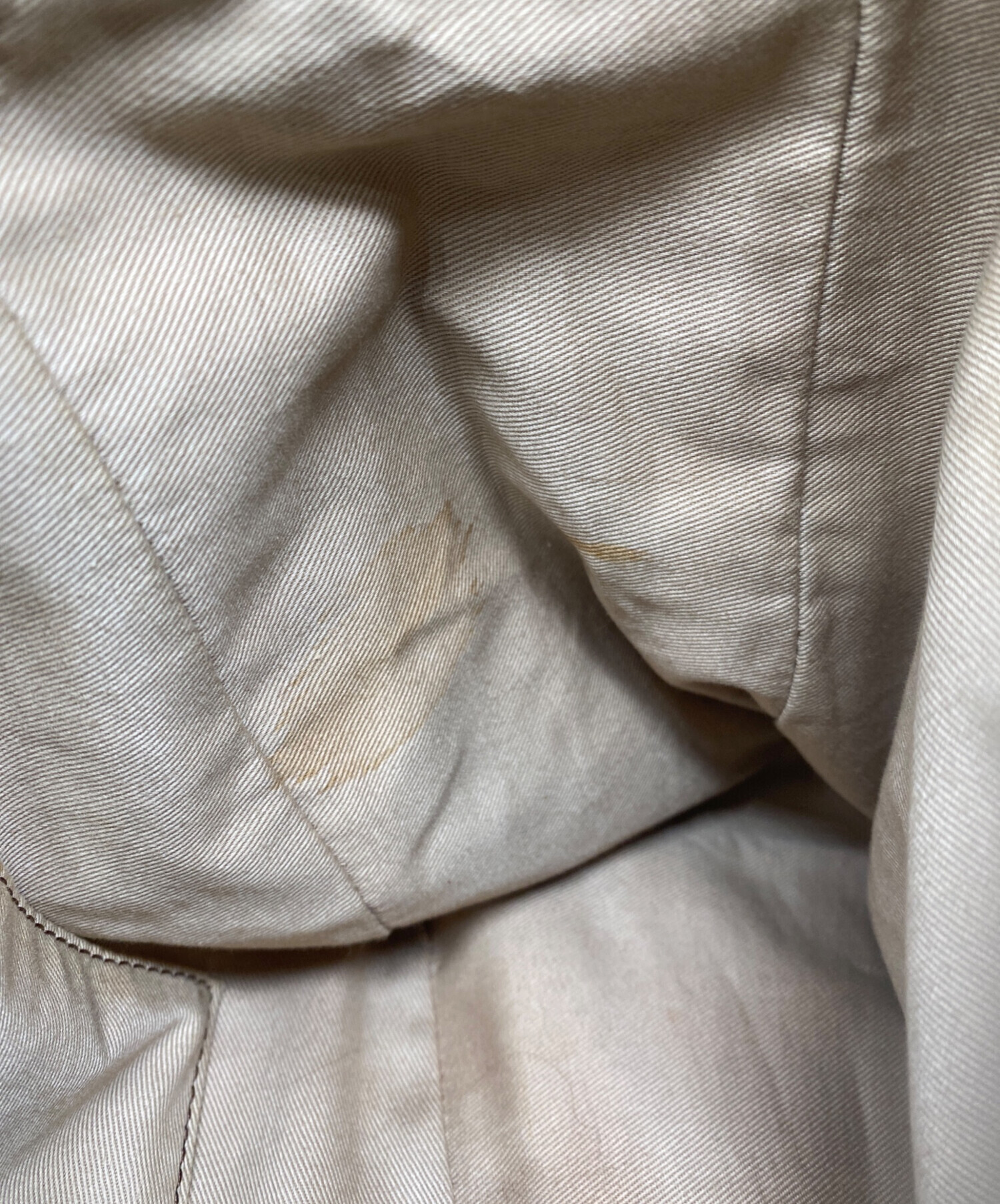 目立つシミや汚れ、におい等がある場合は商品画像や説明文にて極力表記させていただいておりますが、中古品という商品の特性上、全ての瑕疵や不備、洋服直し箇所を撮影・記載をすることは難しくなっております。また、ほとんどのアイテムは店頭と併売しておりますため、出品掲載時からコンディションが変動している場合もございます。あらかじめご了承くださいませ。