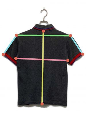 当サイトでは商品の表記サイズの他に、出品商品を採寸しサイズを記載しております。また、実際のアイテム画像を使用した計測とイラストを使用した計測の2パターンがございます。