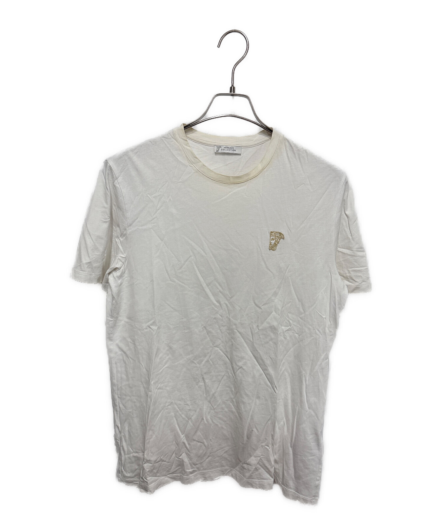 • VERSACE(ヴェルサーチェ)VERSACE (ヴェルサーチェ) 刺繍ロゴTシャツ ホワイト サイズ:Sの古着・服飾アイテム 襟元黄ばみ有