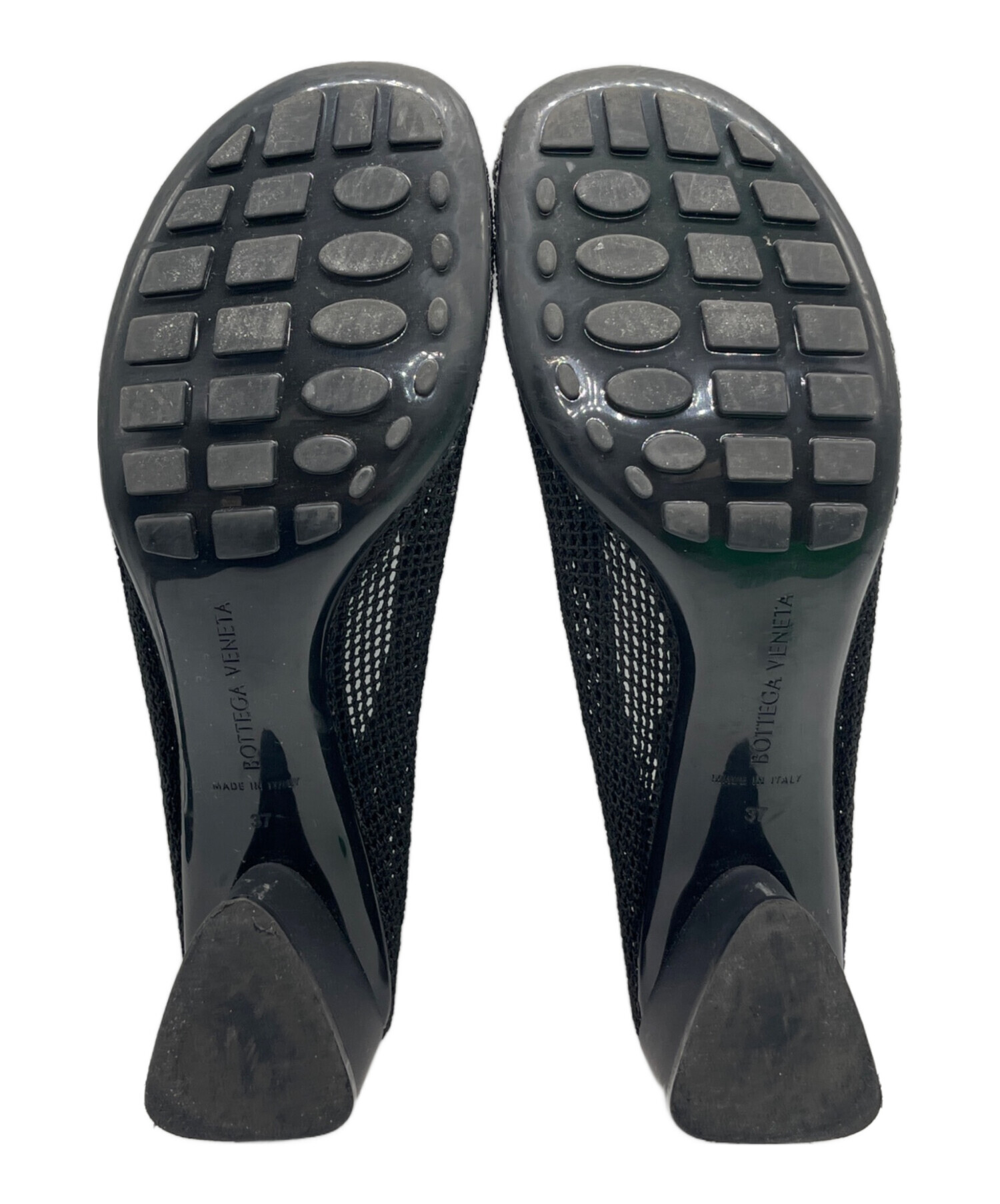 • BOTTEGA VENETA(ボッテガベネタ)BOTTEGA VENETA (ボッテガベネタ) メッシュ チャンキーヒール フラットシューズ ブラック サイズ:37の古着・服飾アイテム ソール減り有