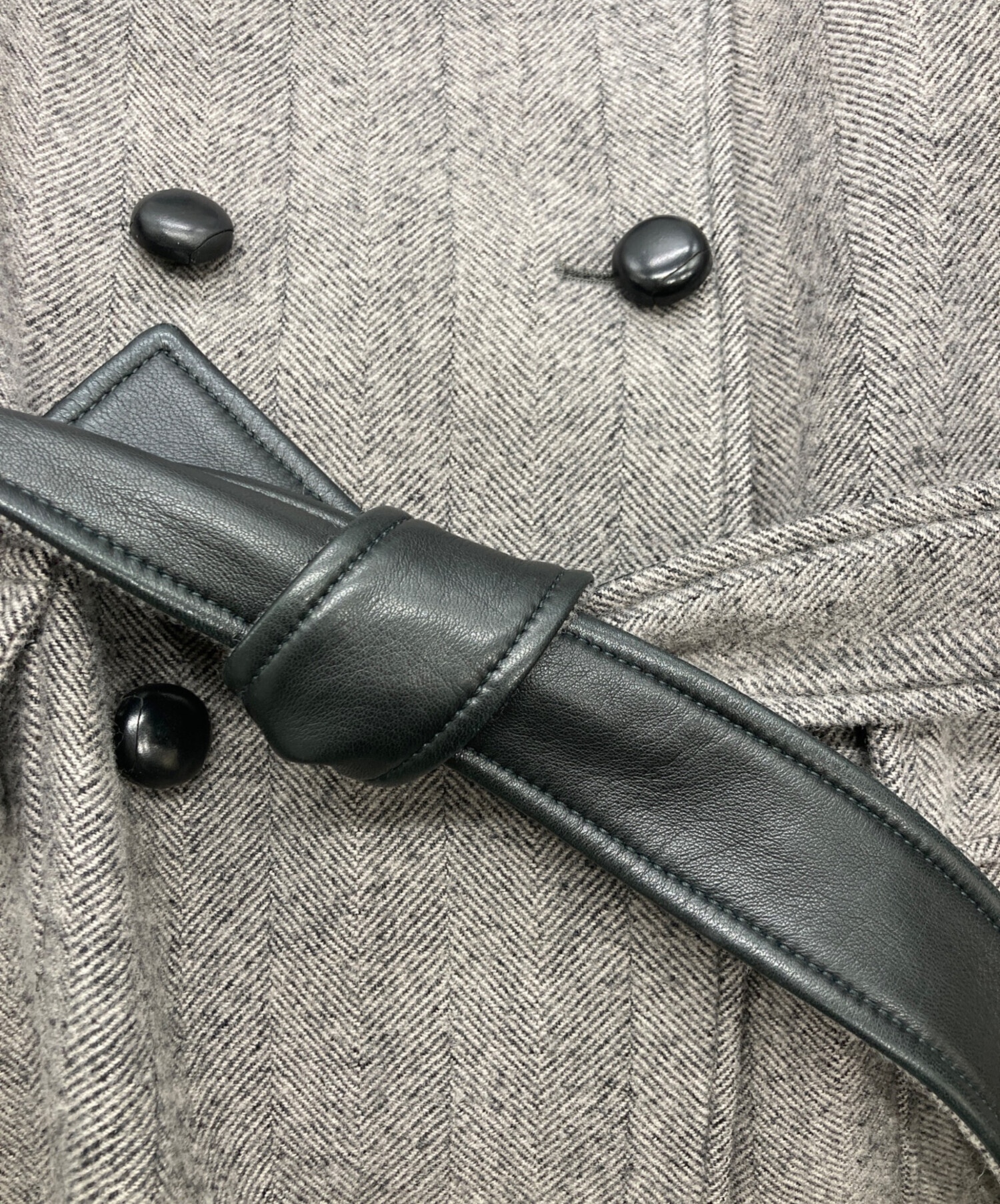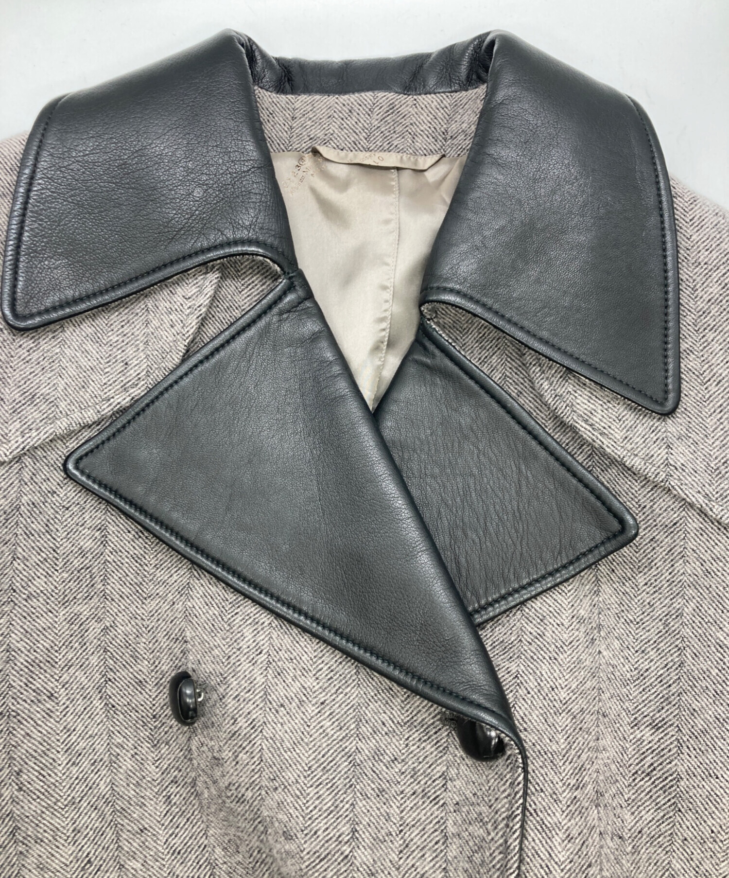 ラムレザー切替 ウールヘリンボーンPコート