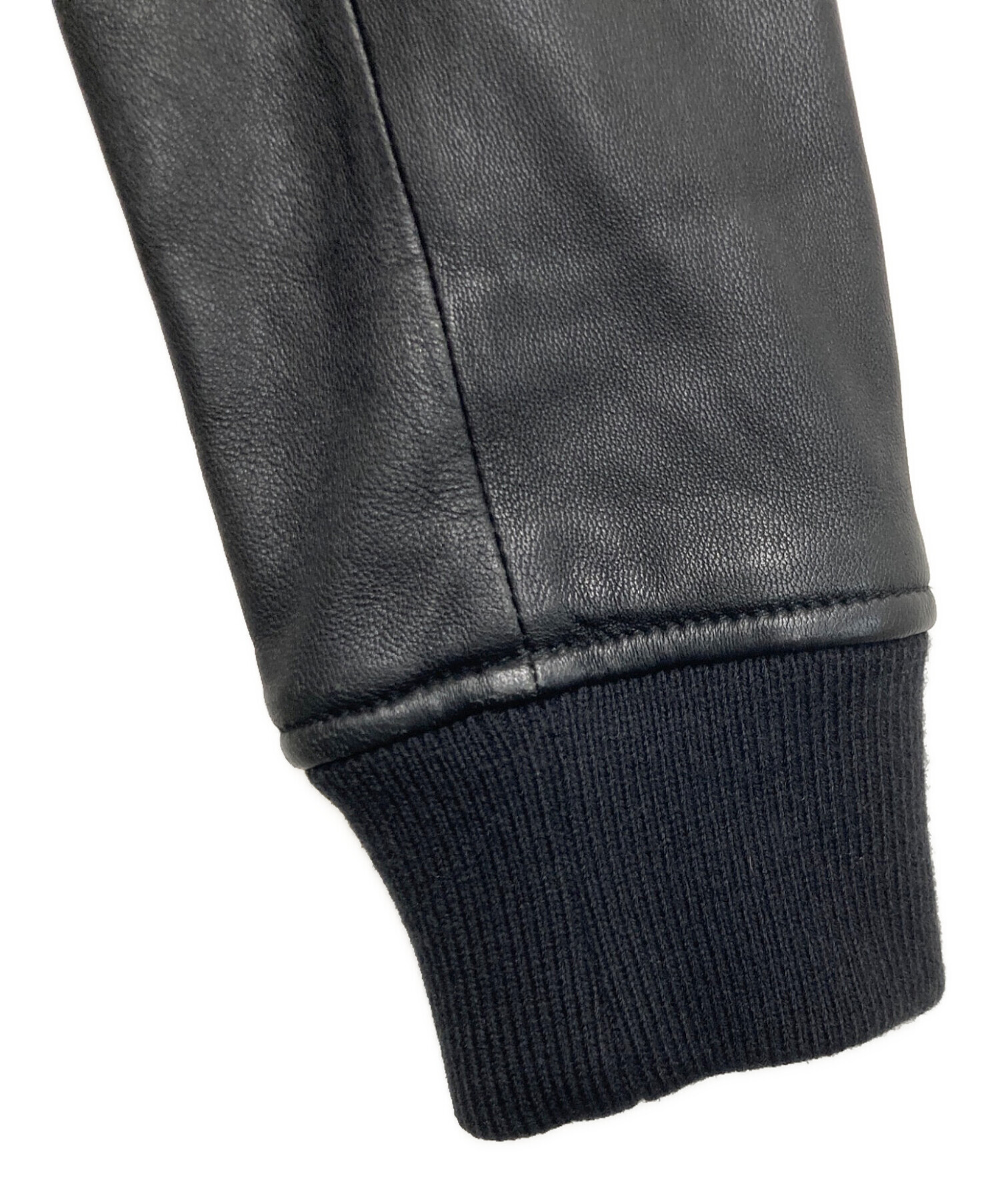 | 素材 | 表側:羊革 裏側/身頃: ポリエステル 65% レーヨン 35% 裏側/袖: ポリエステル 100% リブ: アクリル 70% ウール 30% |