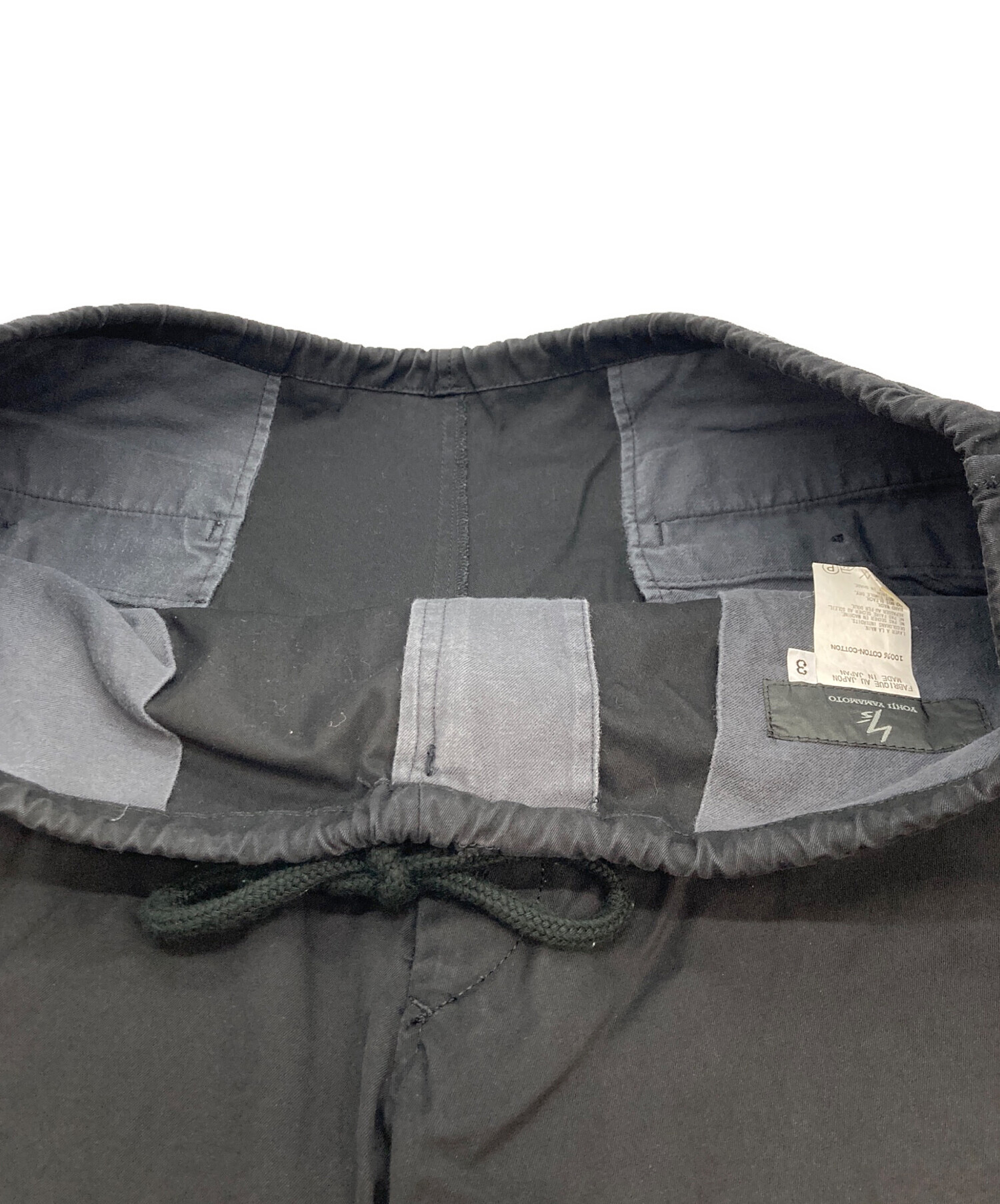 • YOHJI YAMAMOTO(ヨウジヤマモト)YOHJI YAMAMOTO (ヨウジヤマモト) ワイドテーパードパンツ ブラック サイズ:3の古着・服飾アイテム アタリ・ホツレ有