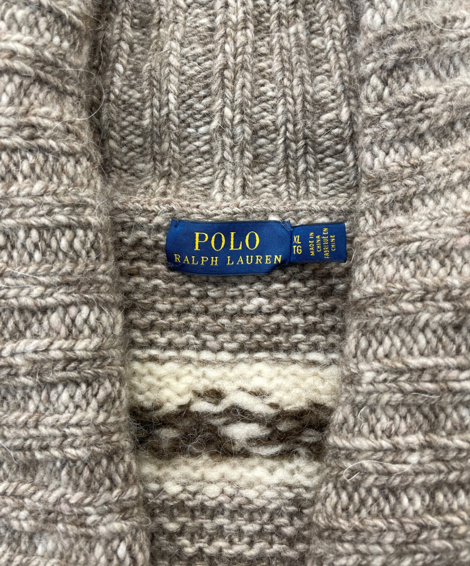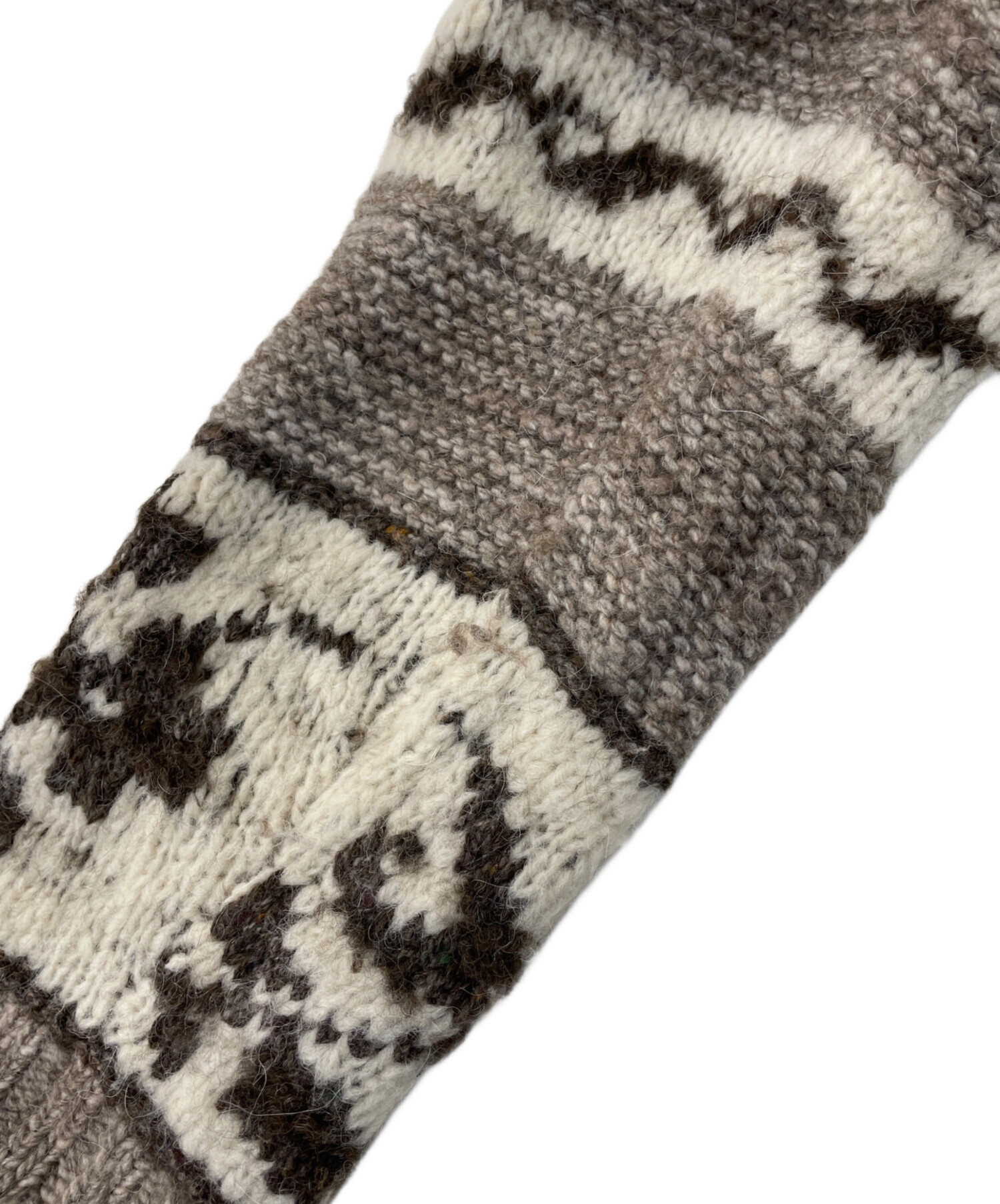 | 素材 | 本体 毛26% アルパカ25% 毛17% 毛10% ナイロン8% 毛6% カシミヤ4% その他繊維4% 袖口 ボトム:毛71% 毛13% アクリル9% アルパカ7% フリンジ 毛100% 前立て部分 毛69% 毛13% アルパカ8% アクリル8% カシミヤ1% その他繊維1% |
