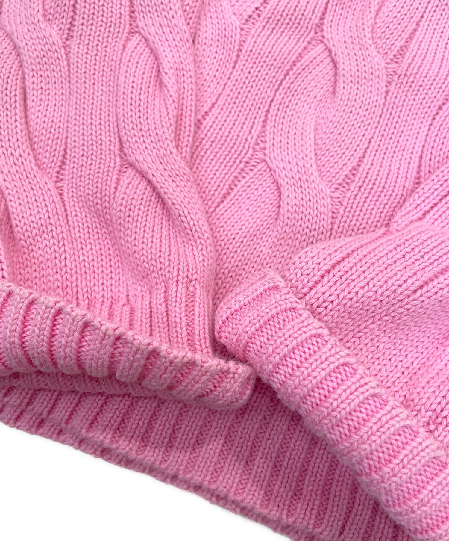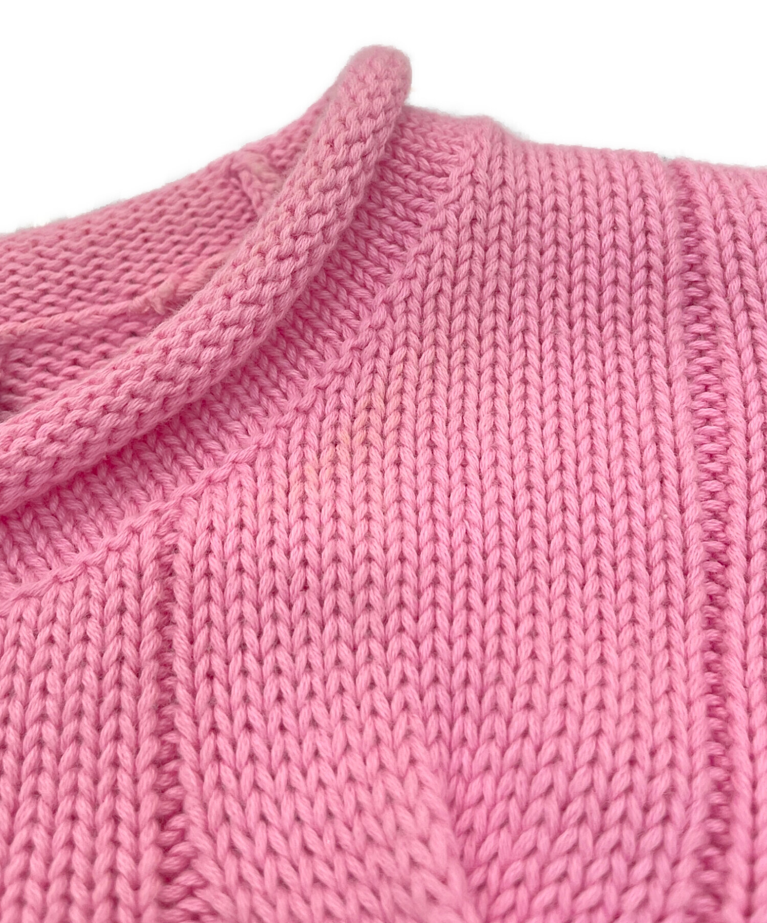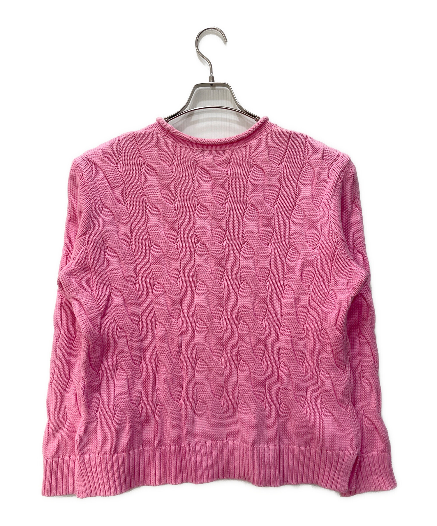 • POLO RALPH LAUREN(ポロ・ラルフローレン)POLO RALPH LAUREN (ポロ・ラルフローレン) ロールネックケーブルニット ピンク サイズ:Mの古着・服飾アイテム シミ・ヨゴレ有