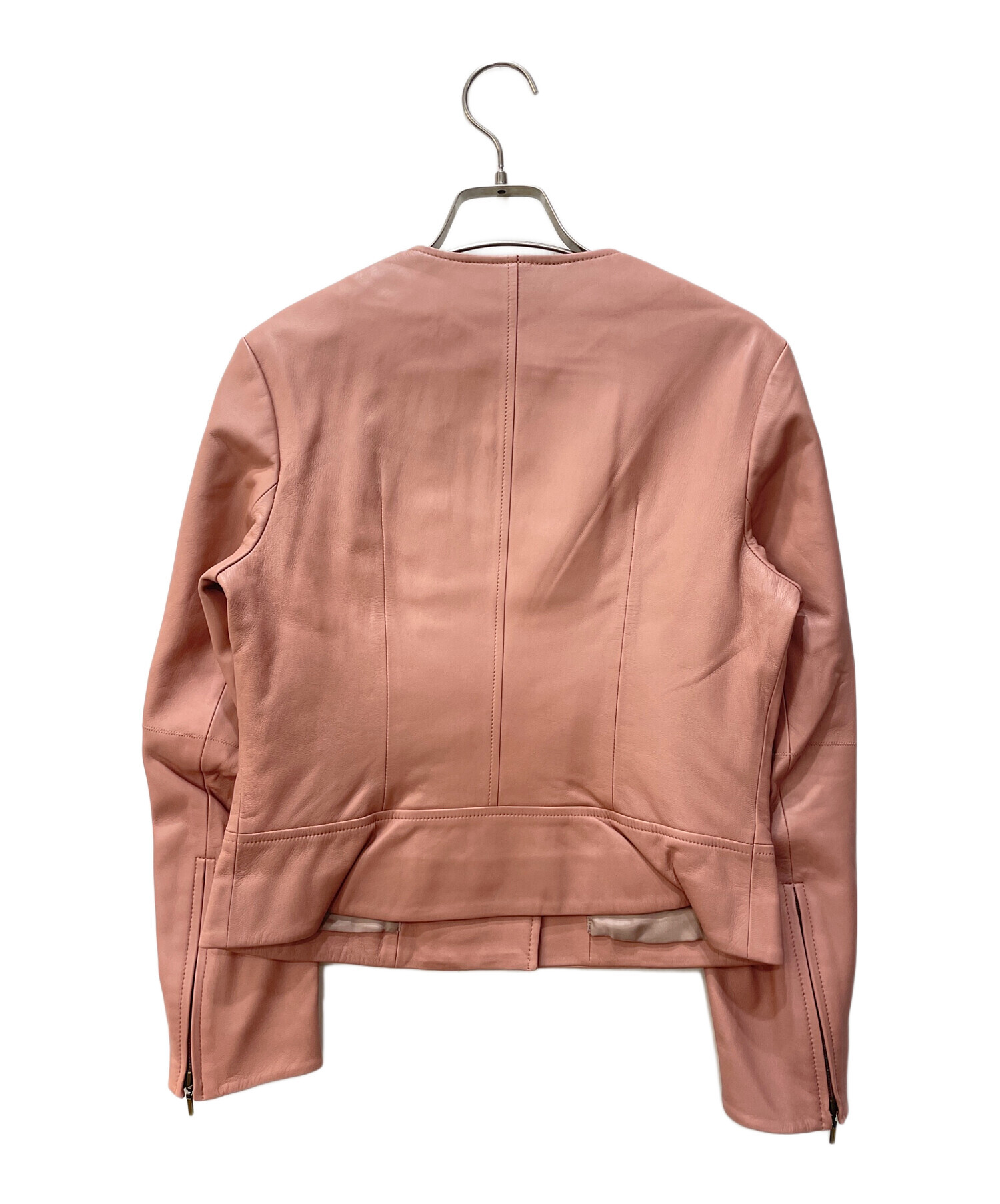 ノーカラーレザーライダースジャケット