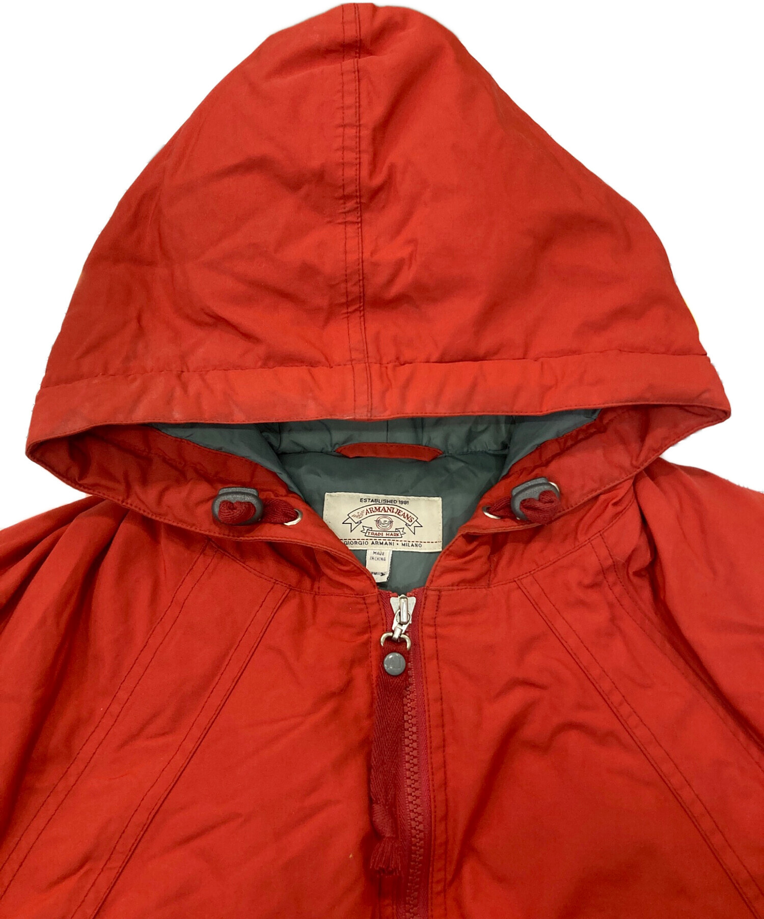 • ARMANI JEANS(アルマーニジーンズ)ARMANI JEANS (アルマーニジーンズ) マウンテンパーカー レッド サイズ:32の古着・服飾アイテム フードヨゴレ有
