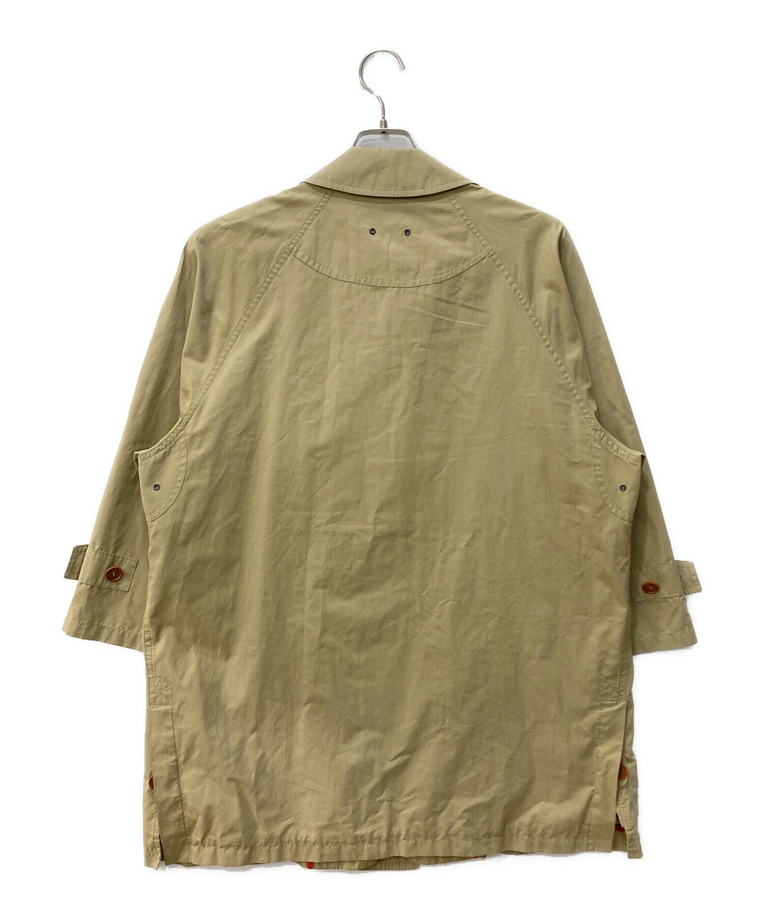 目立つシミや汚れ、におい等がある場合は商品画像や説明文にて極力表記させていただいておりますが、中古品という商品の特性上、全ての瑕疵や不備、洋服直し箇所を撮影・記載をすることは難しくなっております。また、ほとんどのアイテムは店頭と併売しておりますため、出品掲載時からコンディションが変動している場合もございます。あらかじめご了承くださいませ。