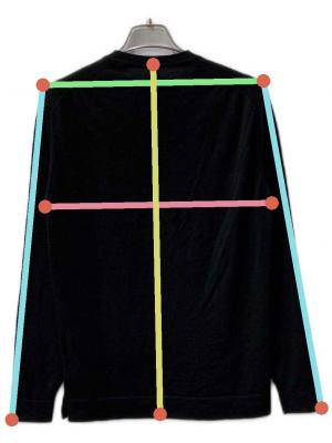 当サイトでは商品の表記サイズの他に、出品商品を採寸しサイズを記載しております。また、実際のアイテム画像を使用した計測とイラストを使用した計測の2パターンがございます。
