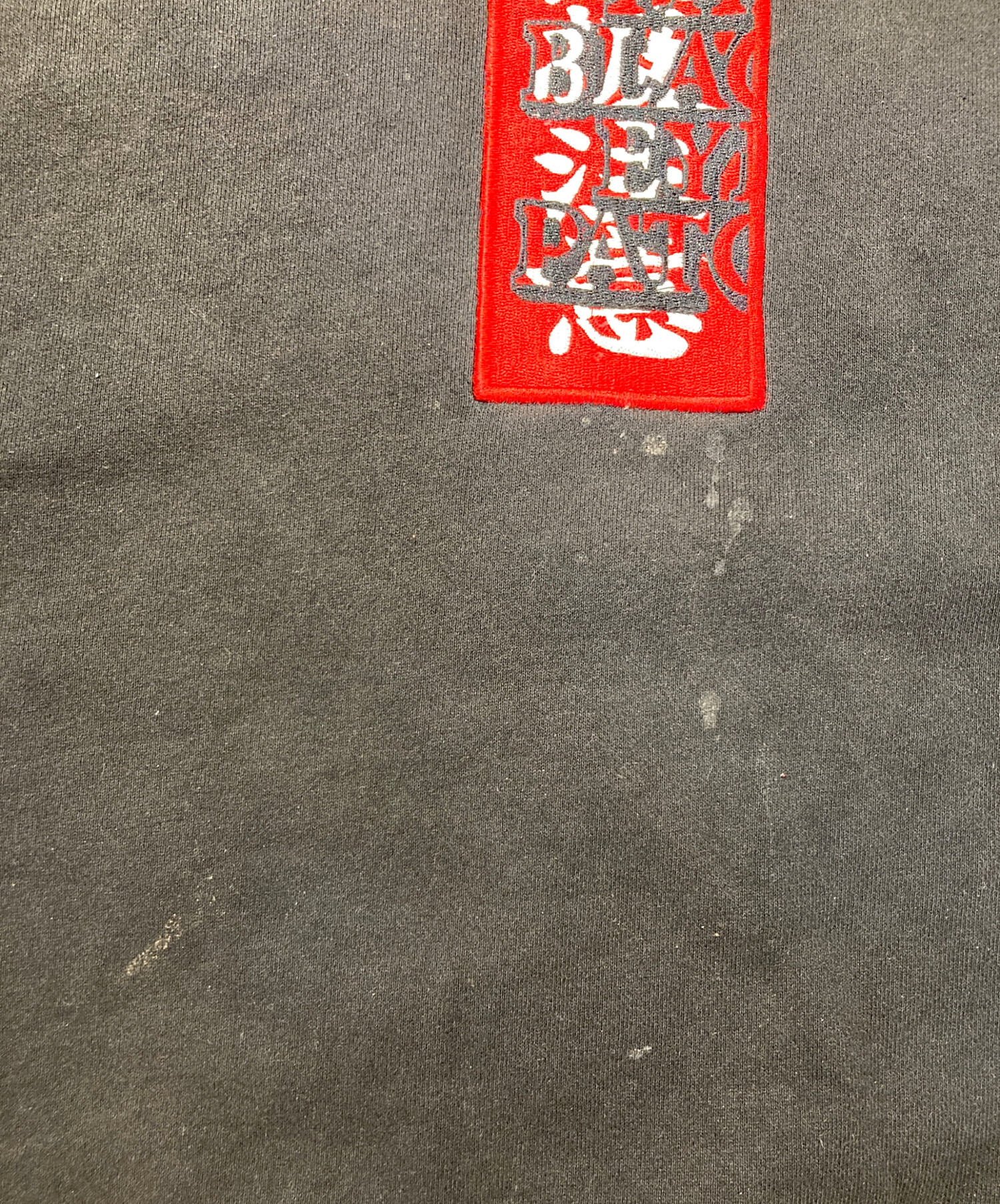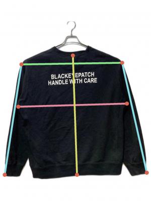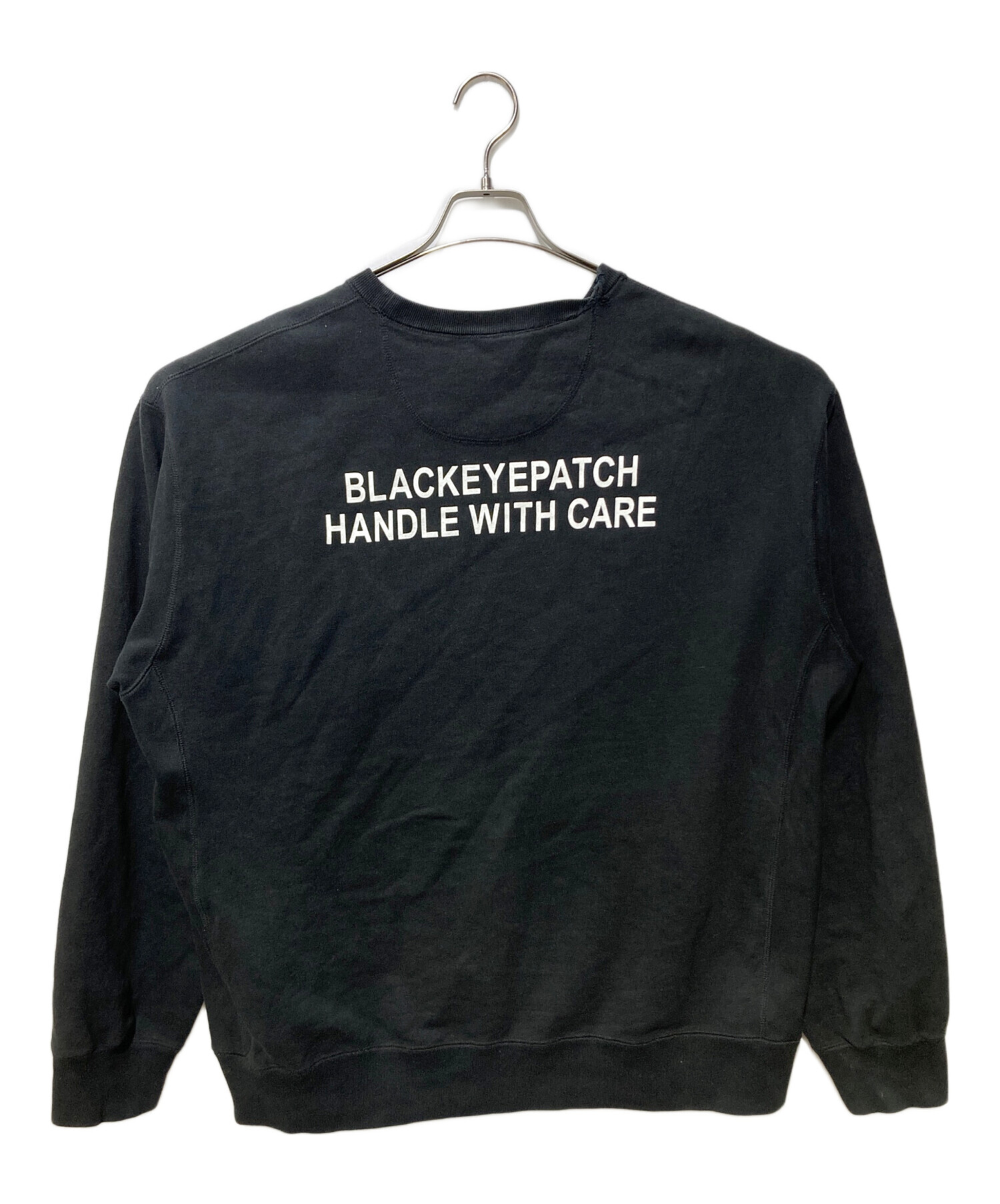 • BlackEyePatch(ブラックアイパッチ)BlackEyePatch (ブラックアイパッチ) クルーネックスウェット ブラック サイズ:XLの古着・服飾アイテム 前面ヨゴレ・シミ有