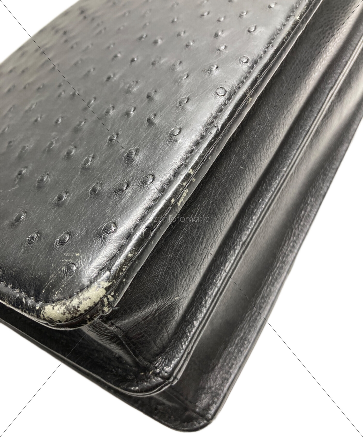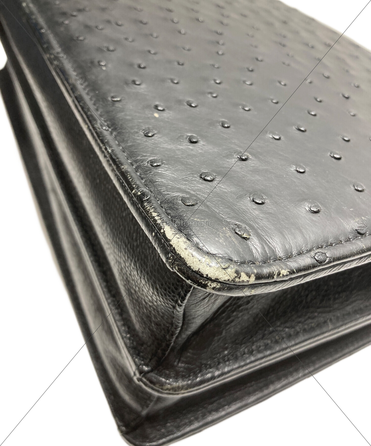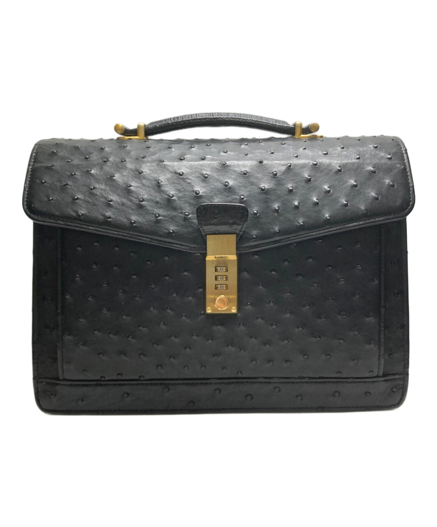 • USED(ユーズド)USED (ユーズド) オーストリッチダイヤル式ハンドバッグ ブラックの古着・服飾アイテム 角スレ有