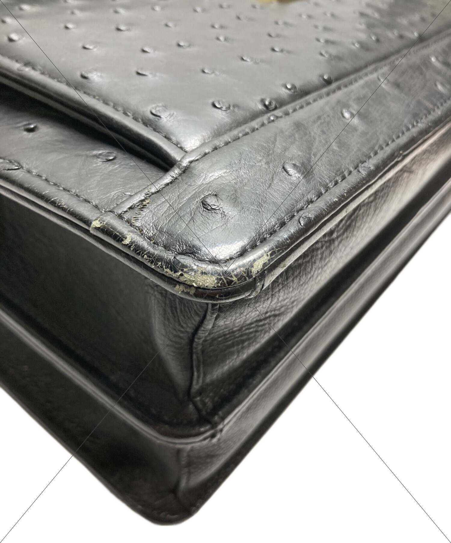 • USED(ユーズド)USED (ユーズド) オーストリッチダイヤル式ハンドバッグ ブラックの古着・服飾アイテム 角スレ