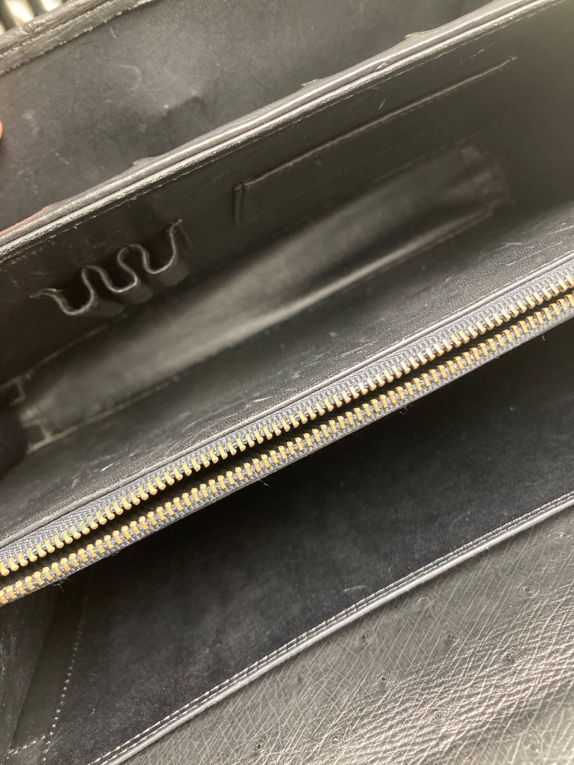 • USED(ユーズド)USED (ユーズド) オーストリッチダイヤル式ハンドバッグ ブラックの古着・服飾アイテム 内側キズ有