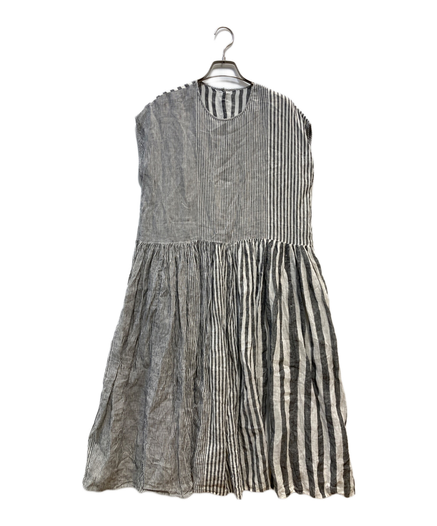 | アイテム名 | 80s パワールーム リネン ランダム ストライプ フレンチスリーブ ワンピース/ロング丈/総柄 |